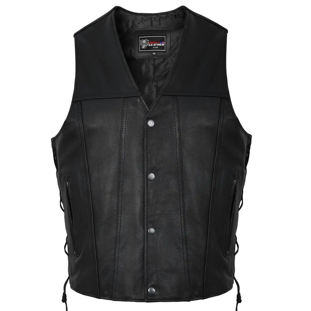Vance Leather Gambler Style Premium Cowhide Leather Vest