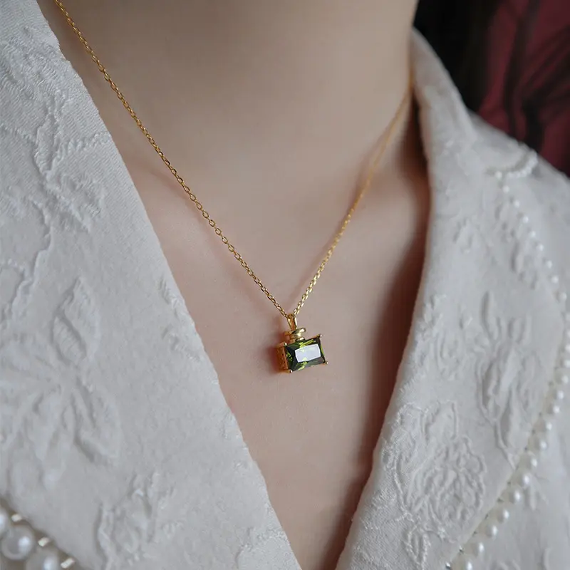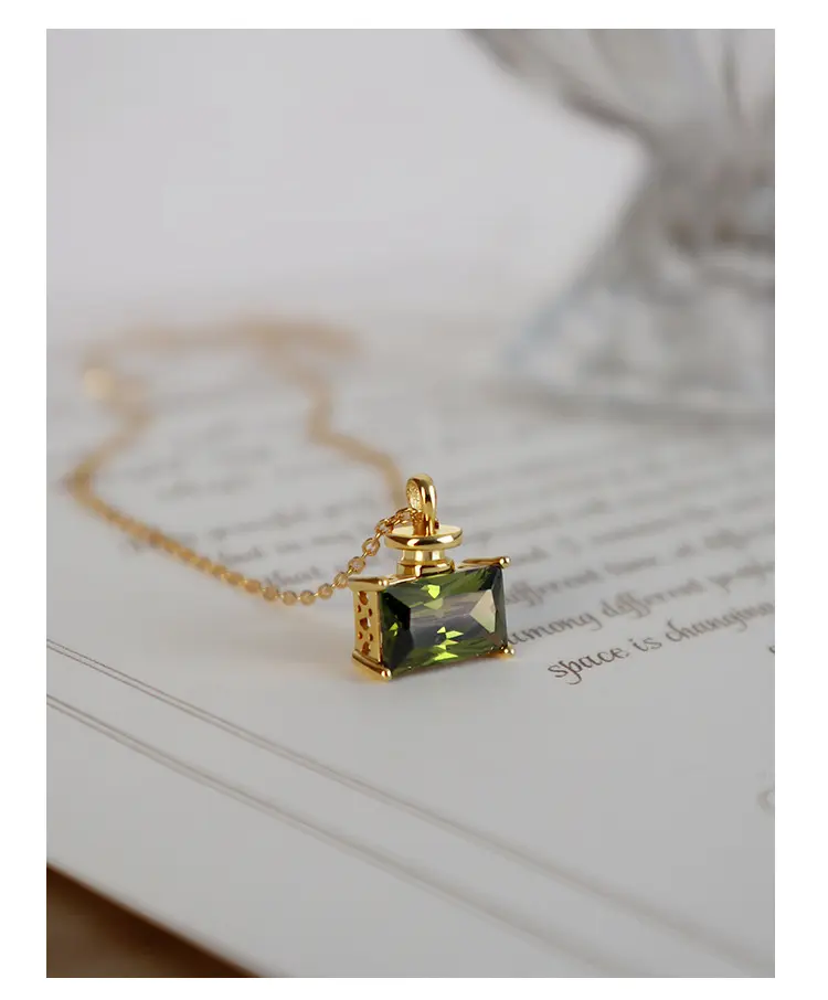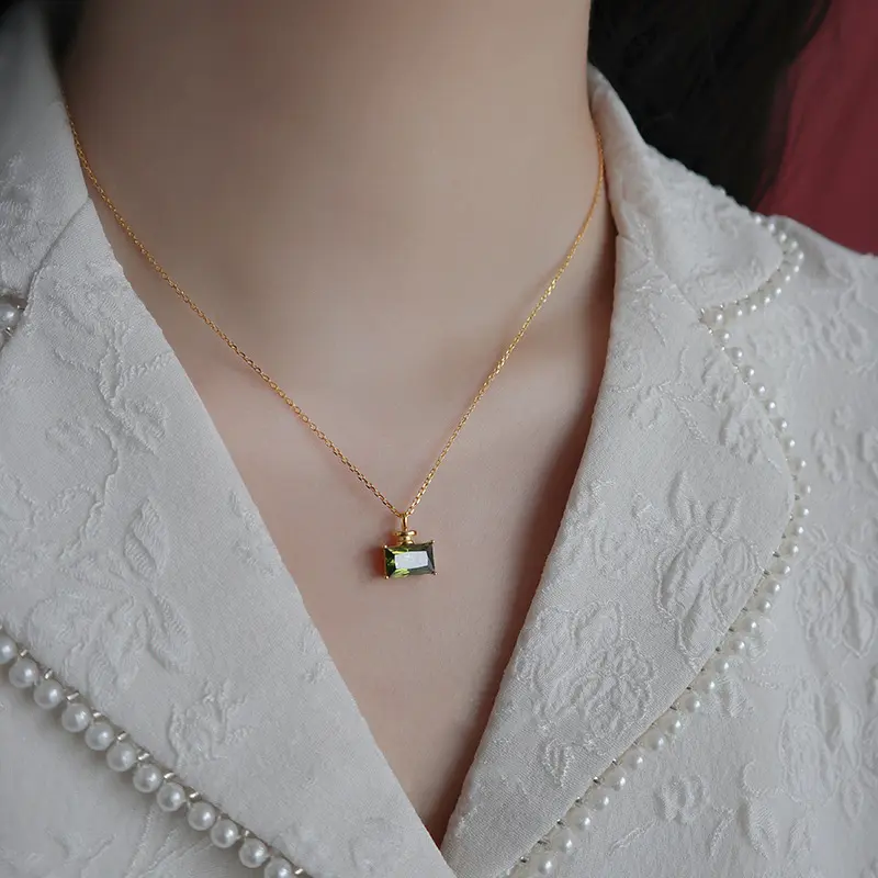 14k Gold Rectangular Malachite Cube Necklace, Sterling Silver Wedding Necklace, Unique Emerald Cube Necklace, Delicate Green Charm Necklace