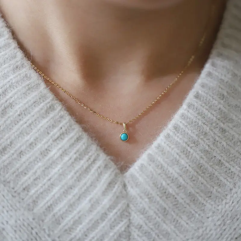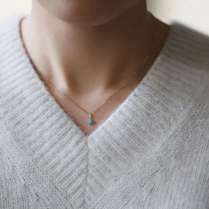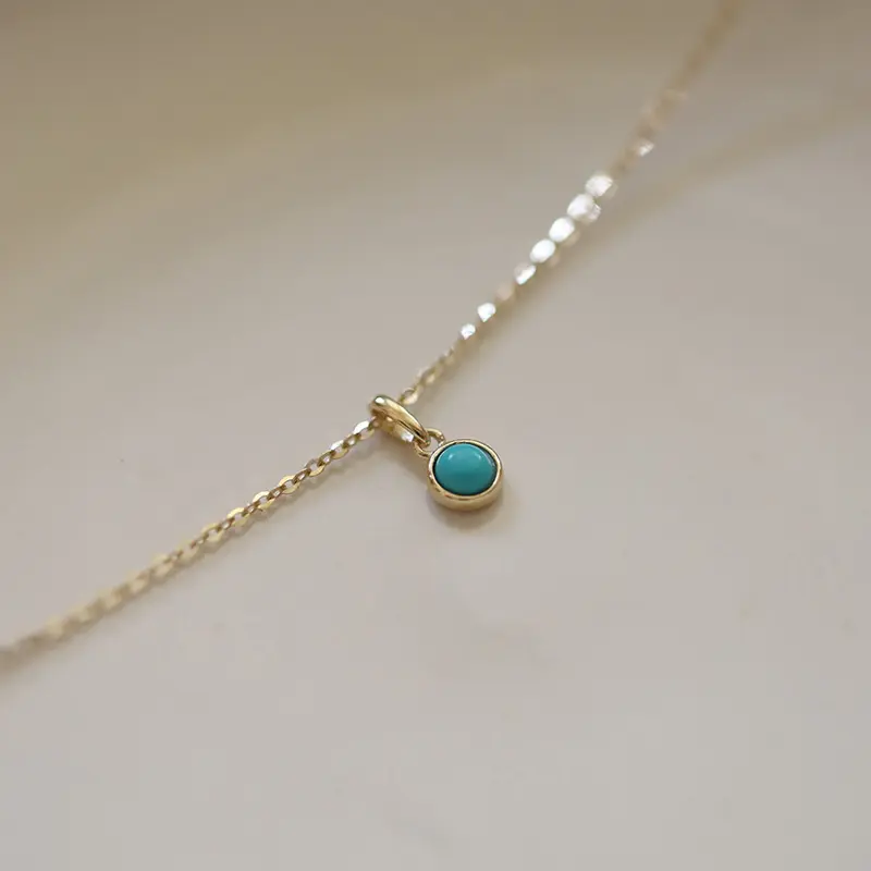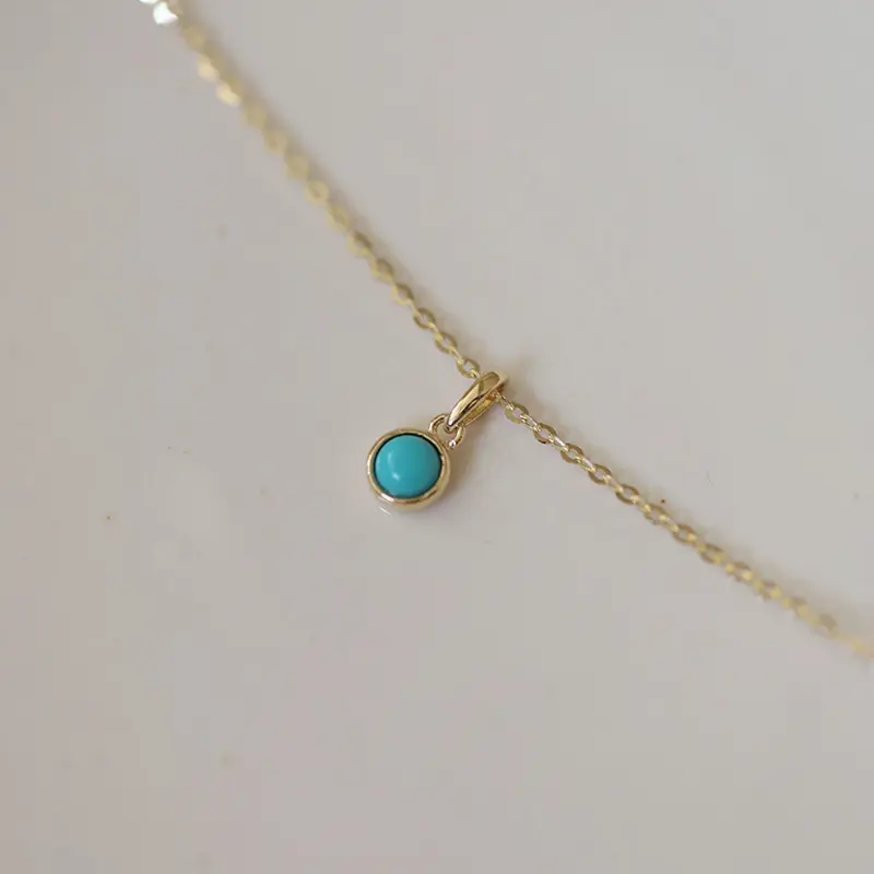 14K Gold Blue Turquoise Wedding Necklace, Layering Gemstone Necklace, Genuine Charm Turquoise Necklace, Sterling Silver Gift For Women