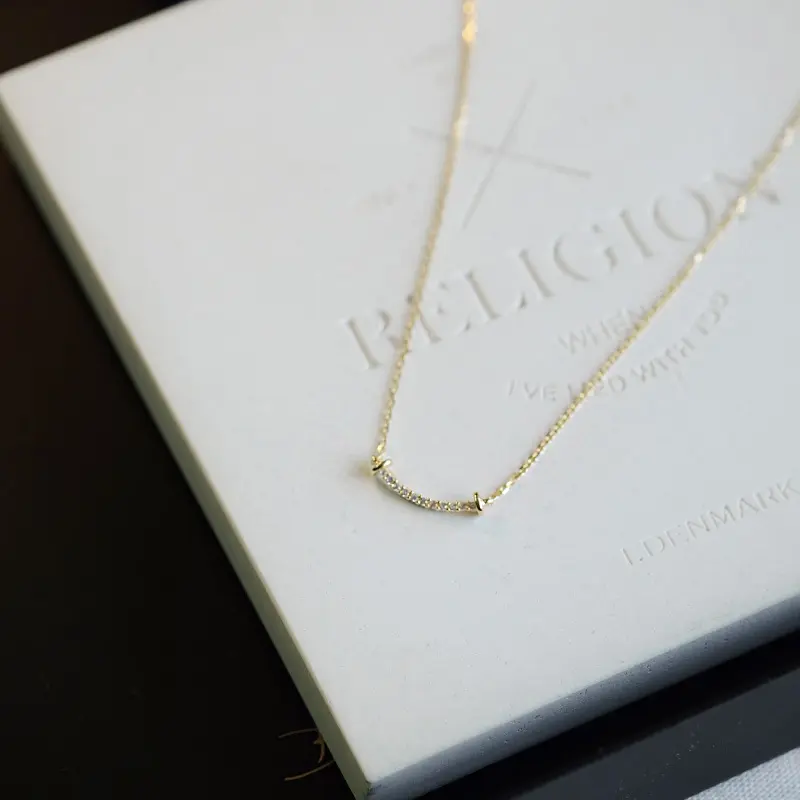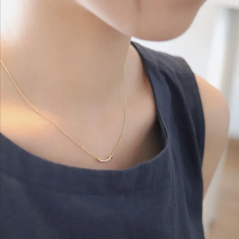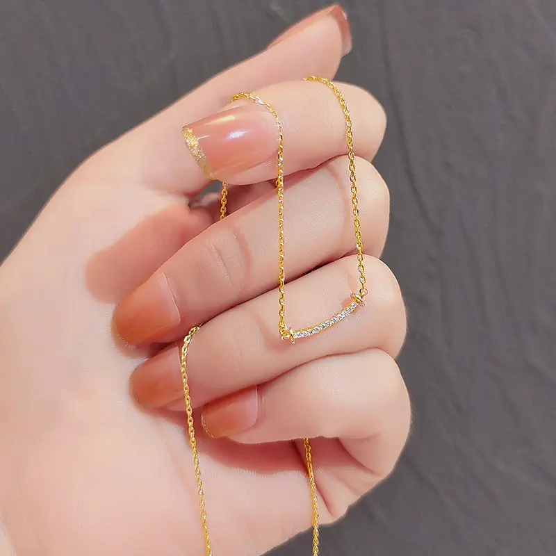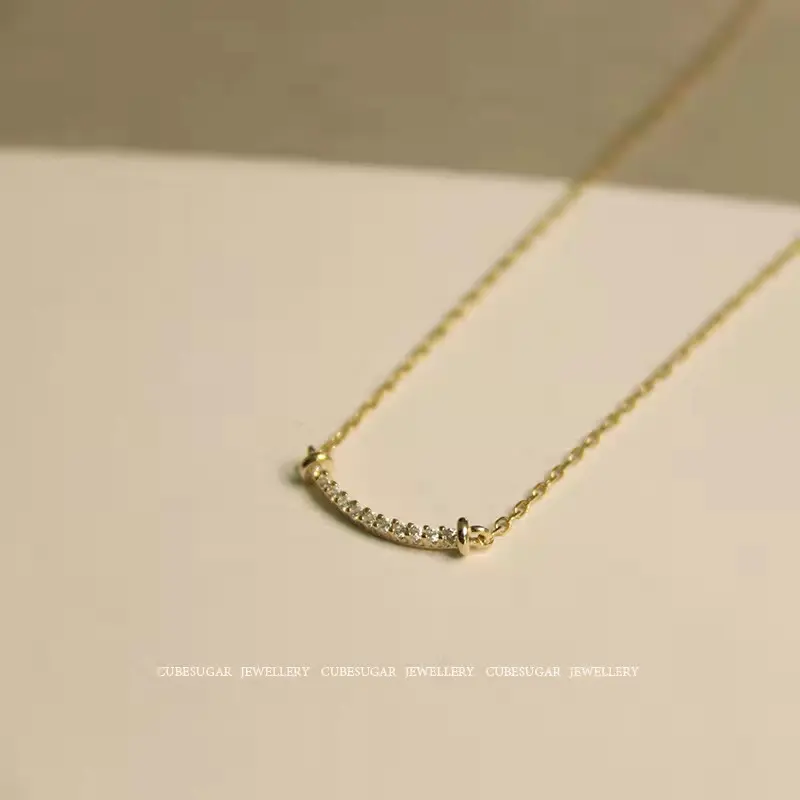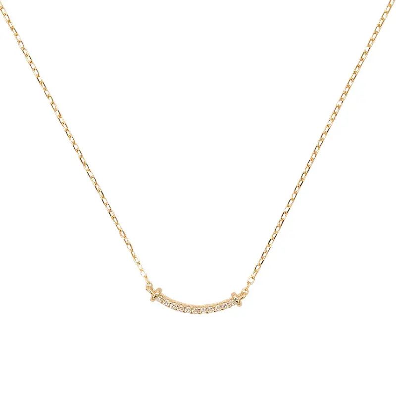 14k Gold Dainty Curved Necklace, Sterling Silver Bridesmaid Gifts, Curved Diamond Necklace, Dainty Gold Charm Pendant, Best Gift for Her