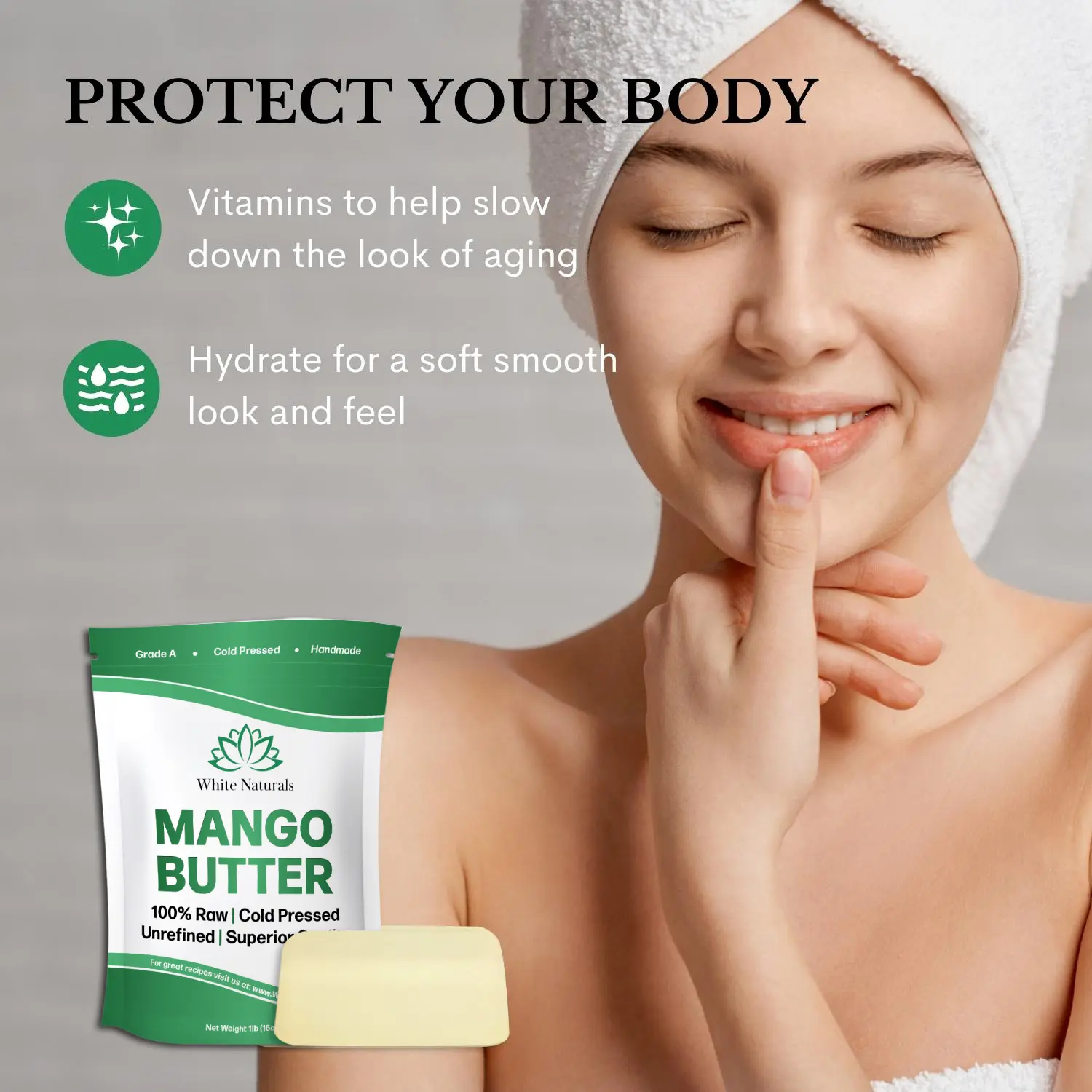 FOR SKIN THAT FEELS VELVETY, SMOOTH & SOFT: Premium Mango Butter is used to heal and moisturize skin that has been Soothes itching, relieves redness from irritated skin, helps skin rejuvenation, and is a great source of anti-oxidants which help combat free radicals and help save your skin.