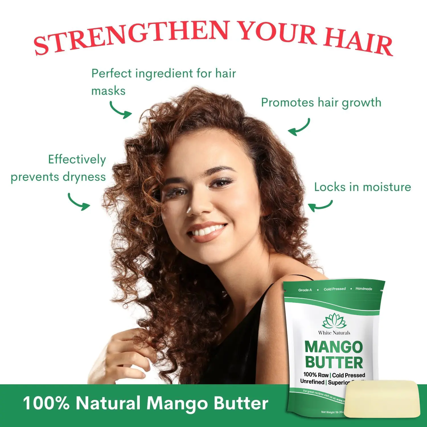 FOR HAIR THAT GROWS STRONGER AND THICKER: Our Organic Mango Butter Will Restore Your Hair's Natural Beauty, Make it look Shiny and Healthy without Frizz.