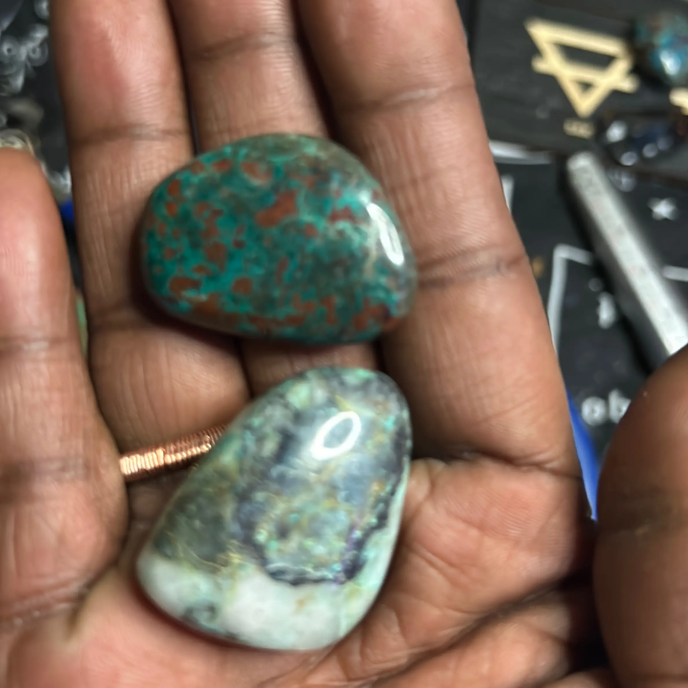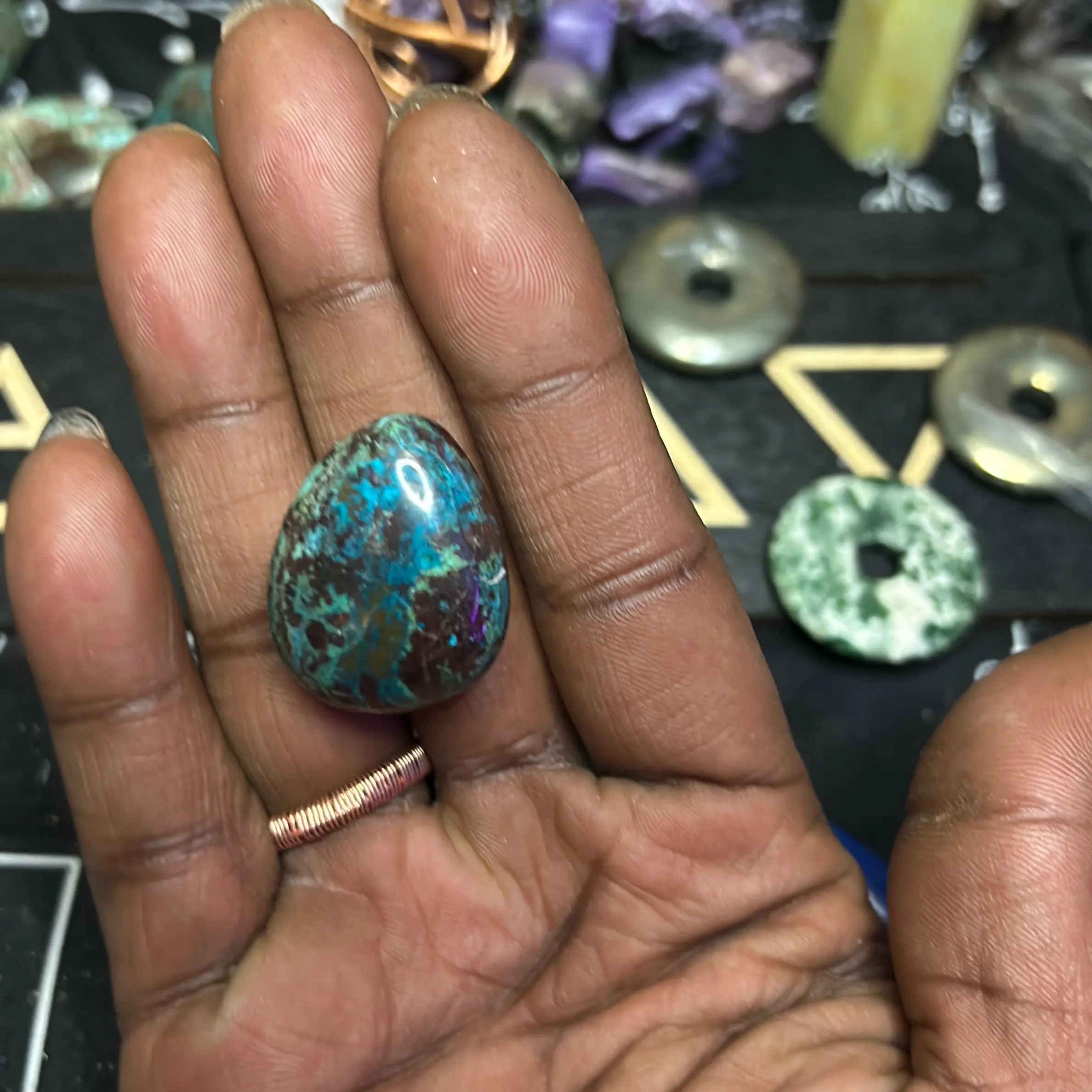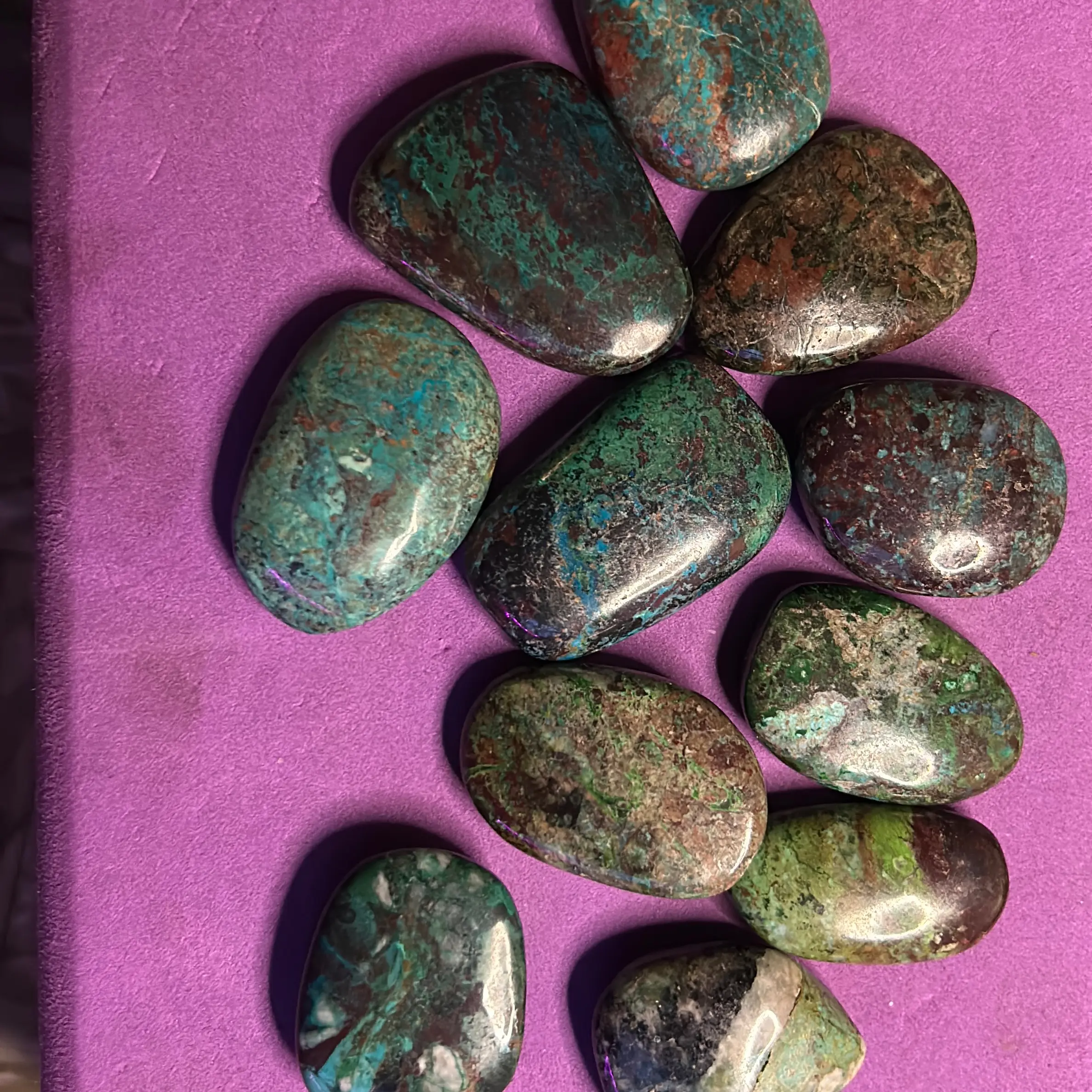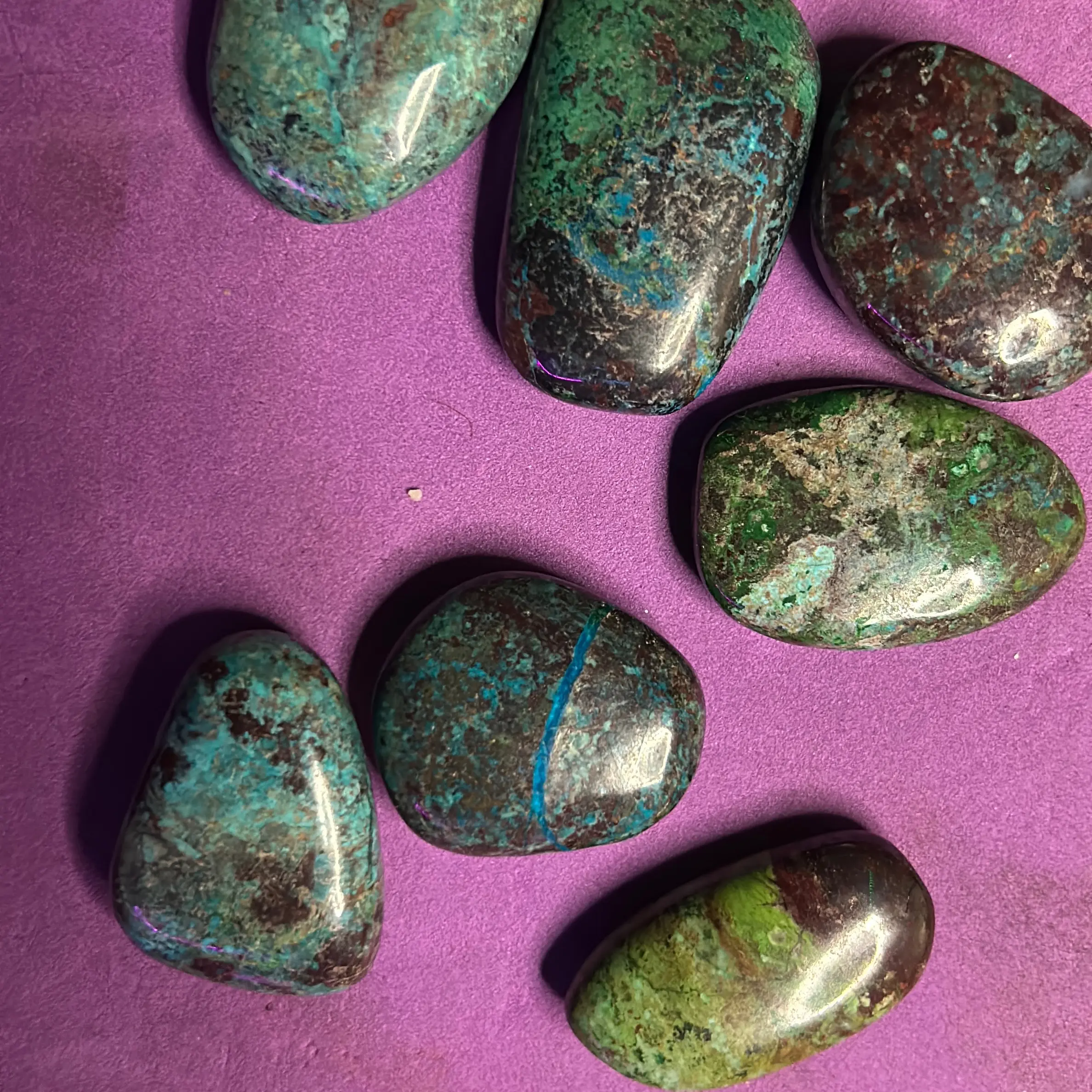 Chrysocolla has long been considered a healing stone with calming energy that helps soothe emotions. It's also believed to promote communication skills while encouraging self-expression - making it perfect for use during meditation or creative endeavors.