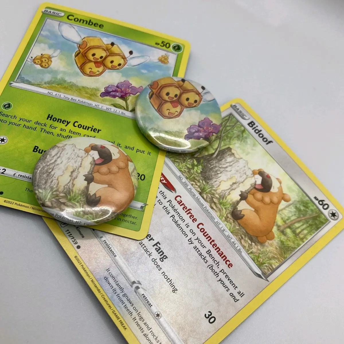 Handmade Pokémon card pinback buttons! Cut and pressed by hand with a button maker.