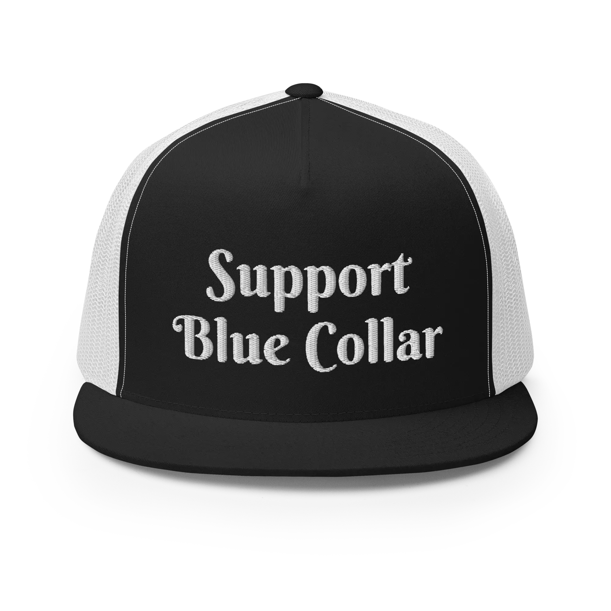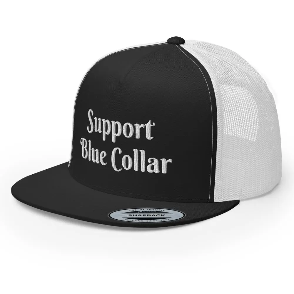 RIVEMUG NG Support Blue Collar Flat Bill Trucker Hat High Crown Adjustable Cap blue collar
