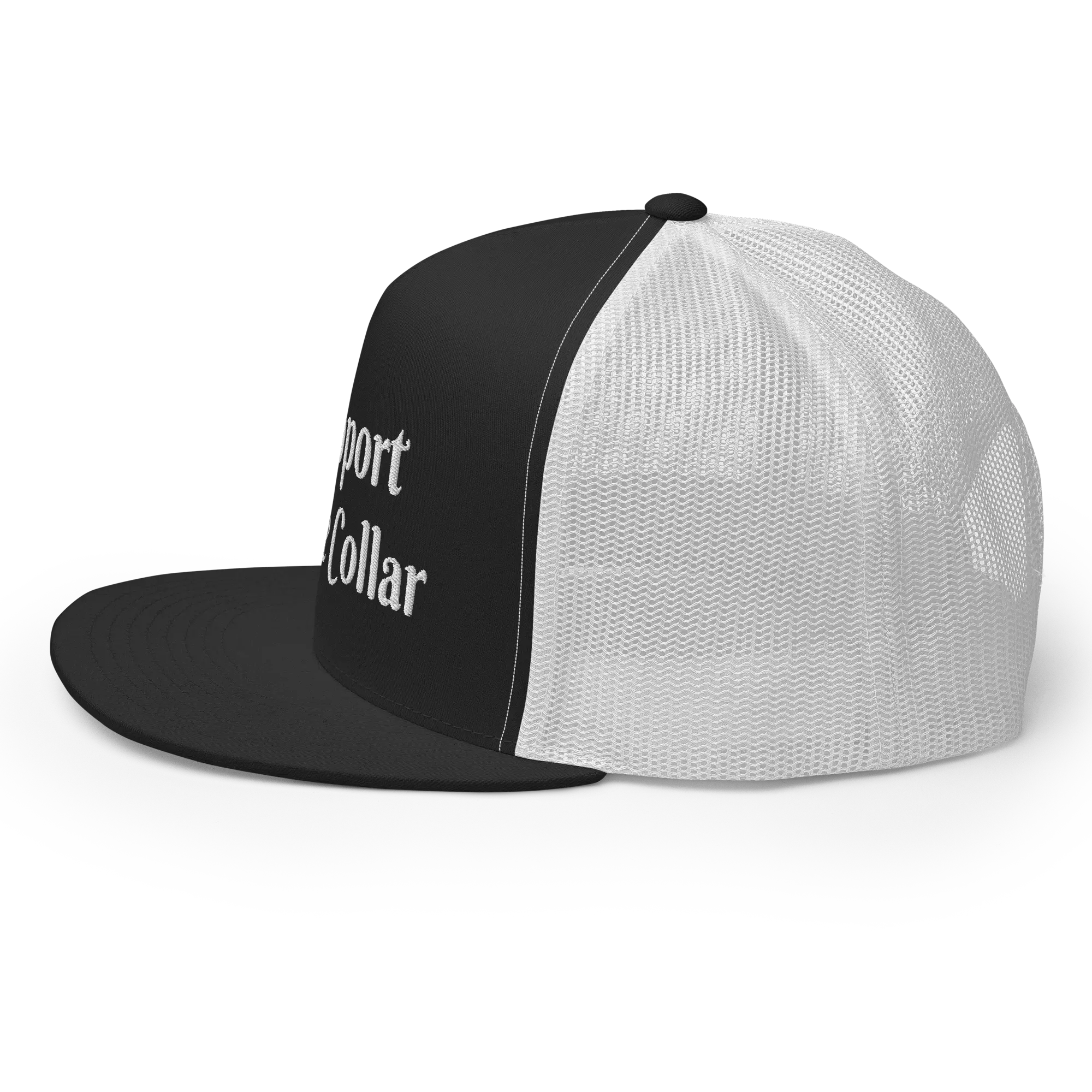 Whether you're running errands or hanging out with friends on weekends, this RIVEMUG NG Support Blue Collar Flat Bill Trucker Hat will keep your style game on point while providing comfort and protection from the sun's rays.