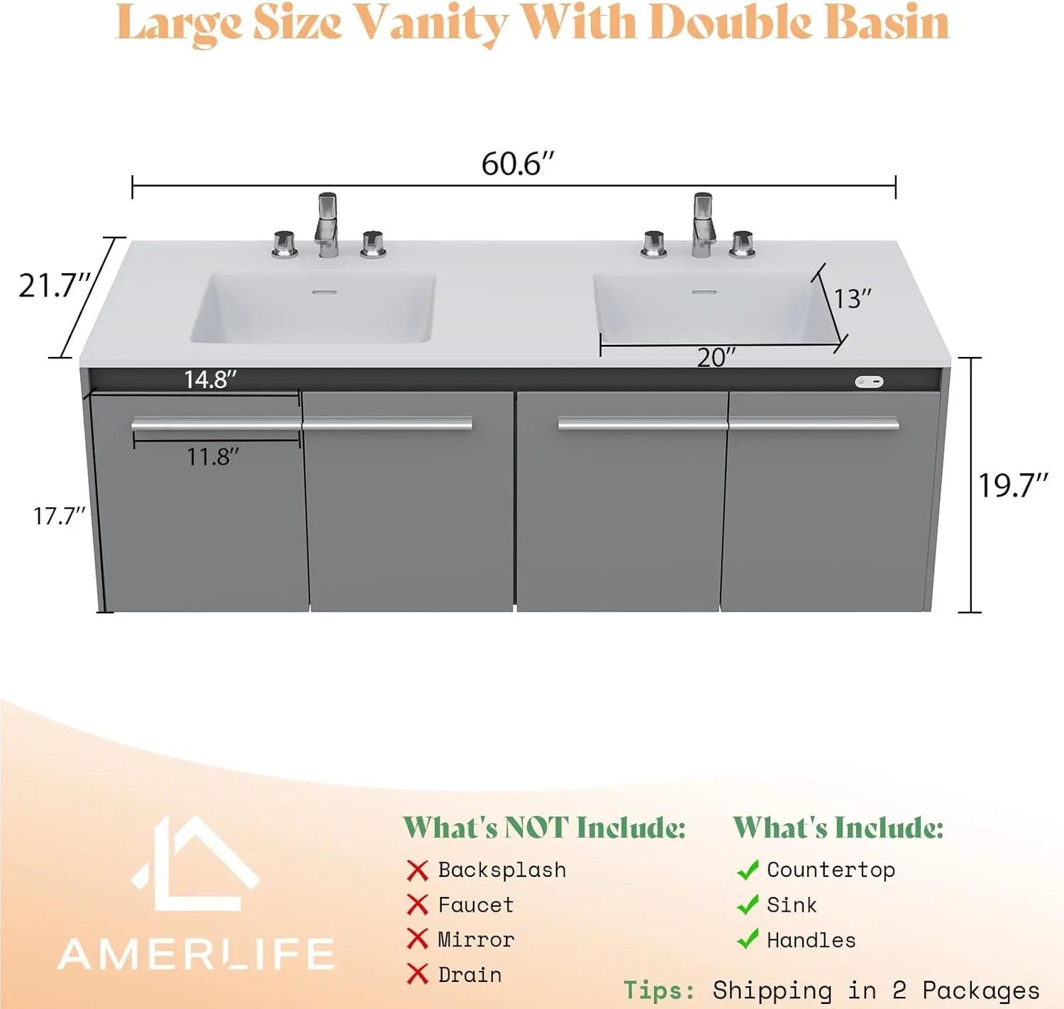 ·【Size & Install】Dimensions: 31"W x 19.6"D x 19.7"H, Sink Size: 31.4"L x 19.6"W x 7"H. Two people within 30min to assemble. NOT INCLUDED Mirror, Faucet, and Pop-up Drain.