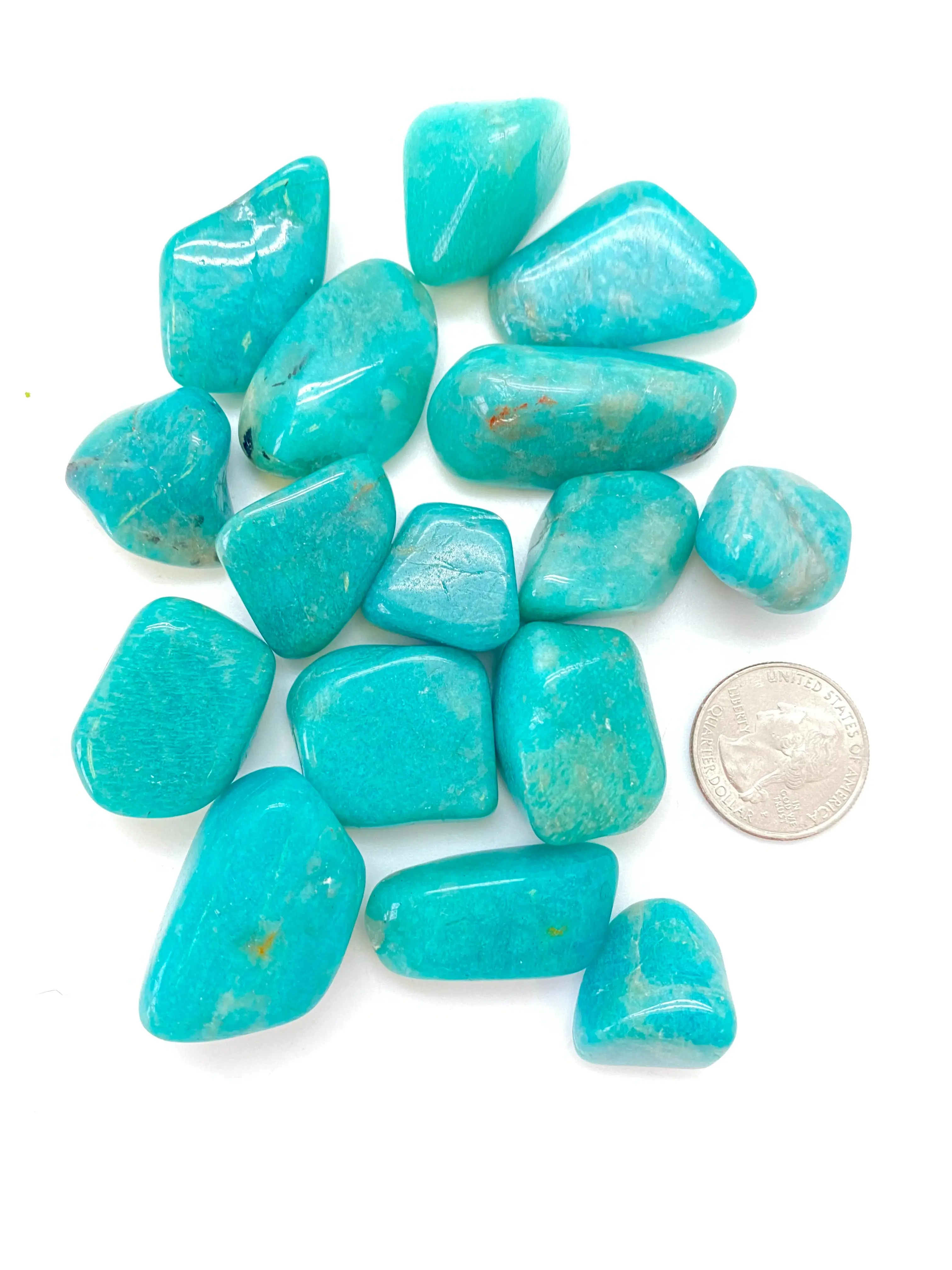 Discover the enchanting beauty of the Amazonite Tumbled Stone - Polished Natural Amazonite Crystal. This listing is for a single Amazonite Tumbled Stone - Polished Natural Amazonite Crystal, showcasing a selection of natural crystals and gemstones available for purchase.