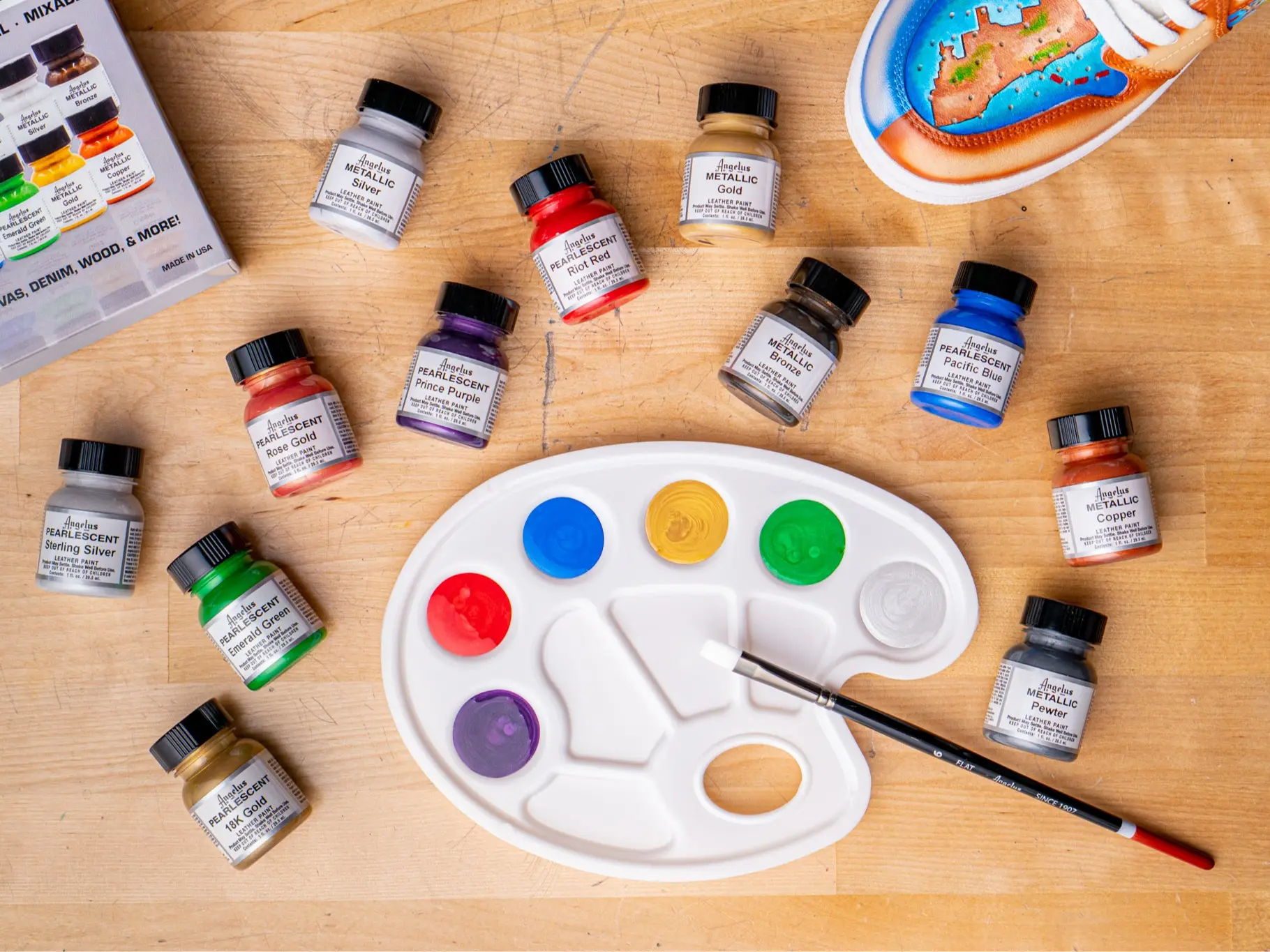 These pearlescent paints coat well and don't show brush strokes. Easily helped me restore these skate boots.