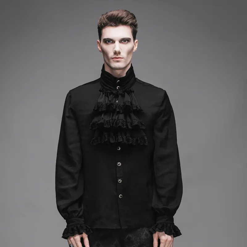 Black Men's Formal Shirt Top ~ Ruffle Collar ~ Prom, Party, Wedding Groom, Masquerade Ball, Gothic Costume, Victorian, Renaissance, Vampire