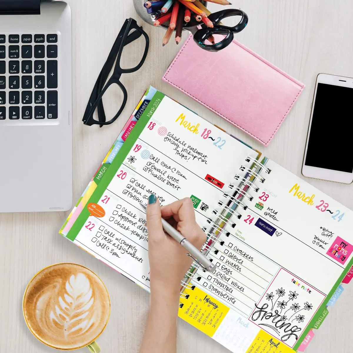 Reminder Binder 2024-2025 18-Month Planner + 361 Planner Stickers, Weekly & Monthly Views, Hard Cover, Elastic Closure, Monthly Divider Tabs, Pockets, To-Do Lists, Keepsake Box