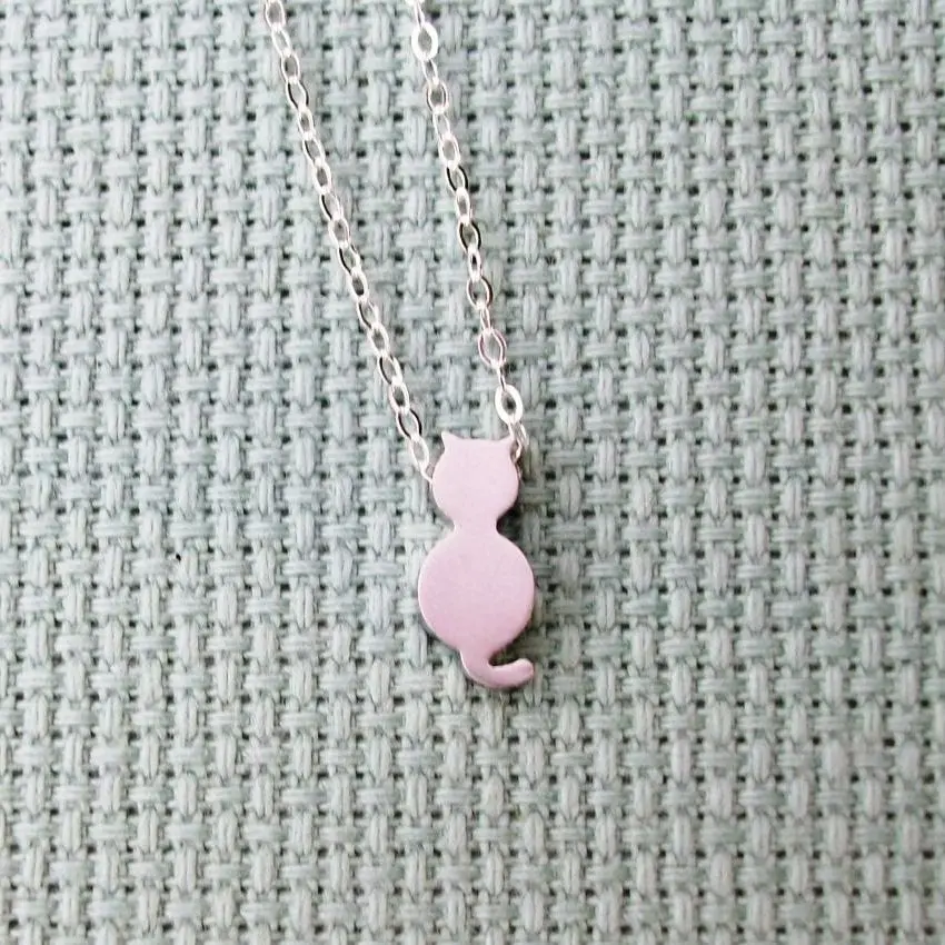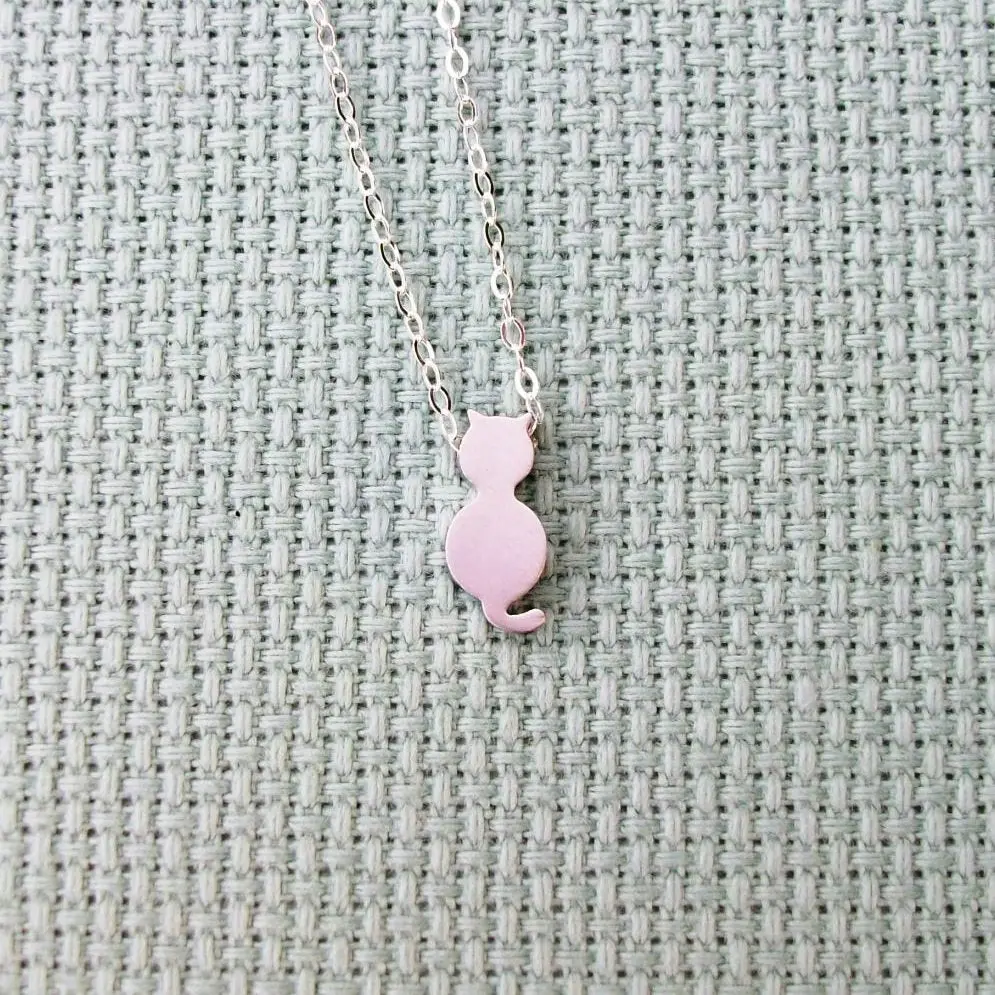 Silver Cat Necklace - Tiny Silver Cat Necklace, Sterling Silver Necklace, Christmas Gift, bridesmaid gifts, grey, white, silver, Mothers Day, Valentines Day