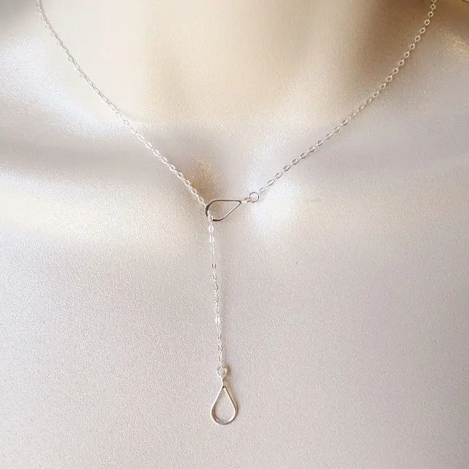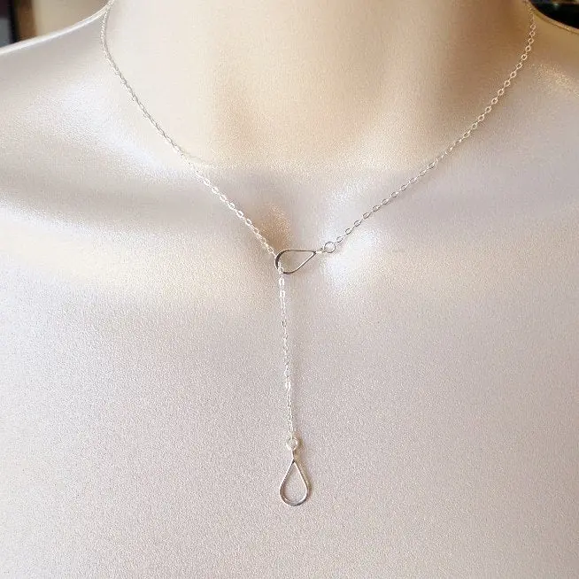 This necklace is a modern and minimalistic sterling silver teardrop lariat necklace is comprised of the following materials