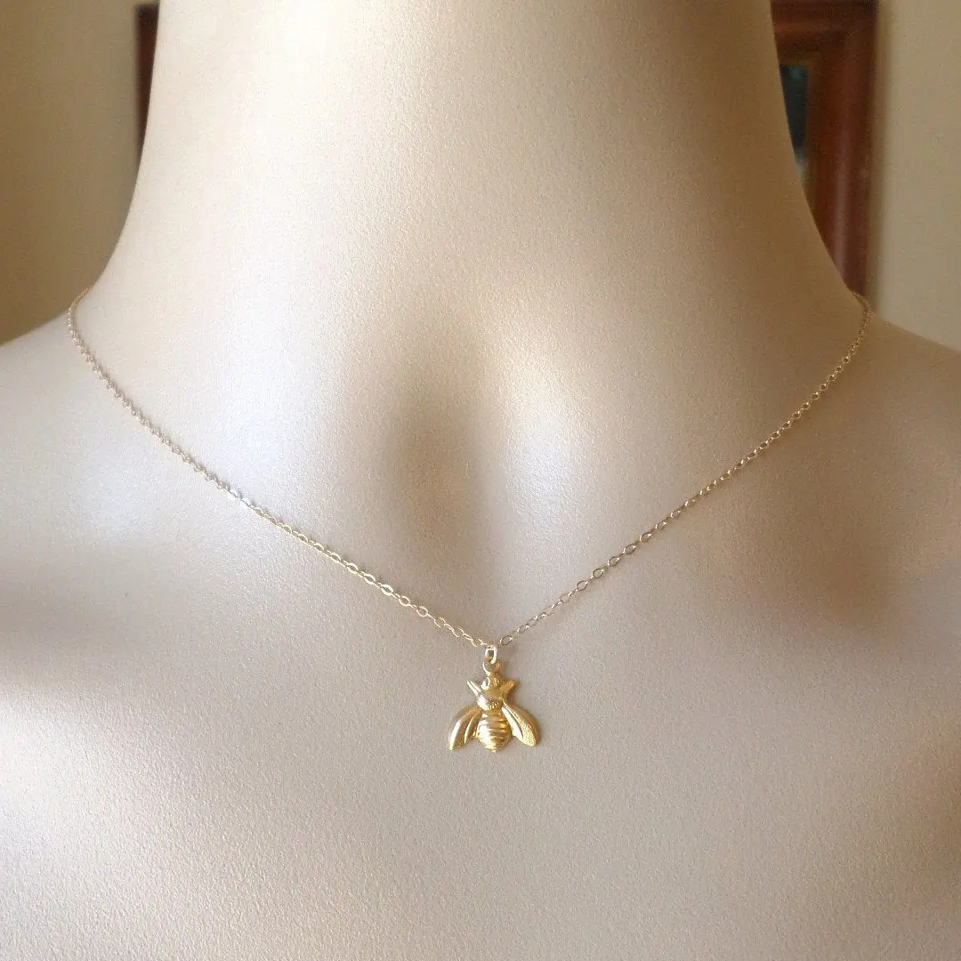 Bee Necklace - Gold Bumblebee Necklace - Gold and Brass Necklace - Nature Inspired Jewelry - Insect Necklace - Bug Necklace - Christmas Gifts - Animal Jewelry - Mothers Day Gift