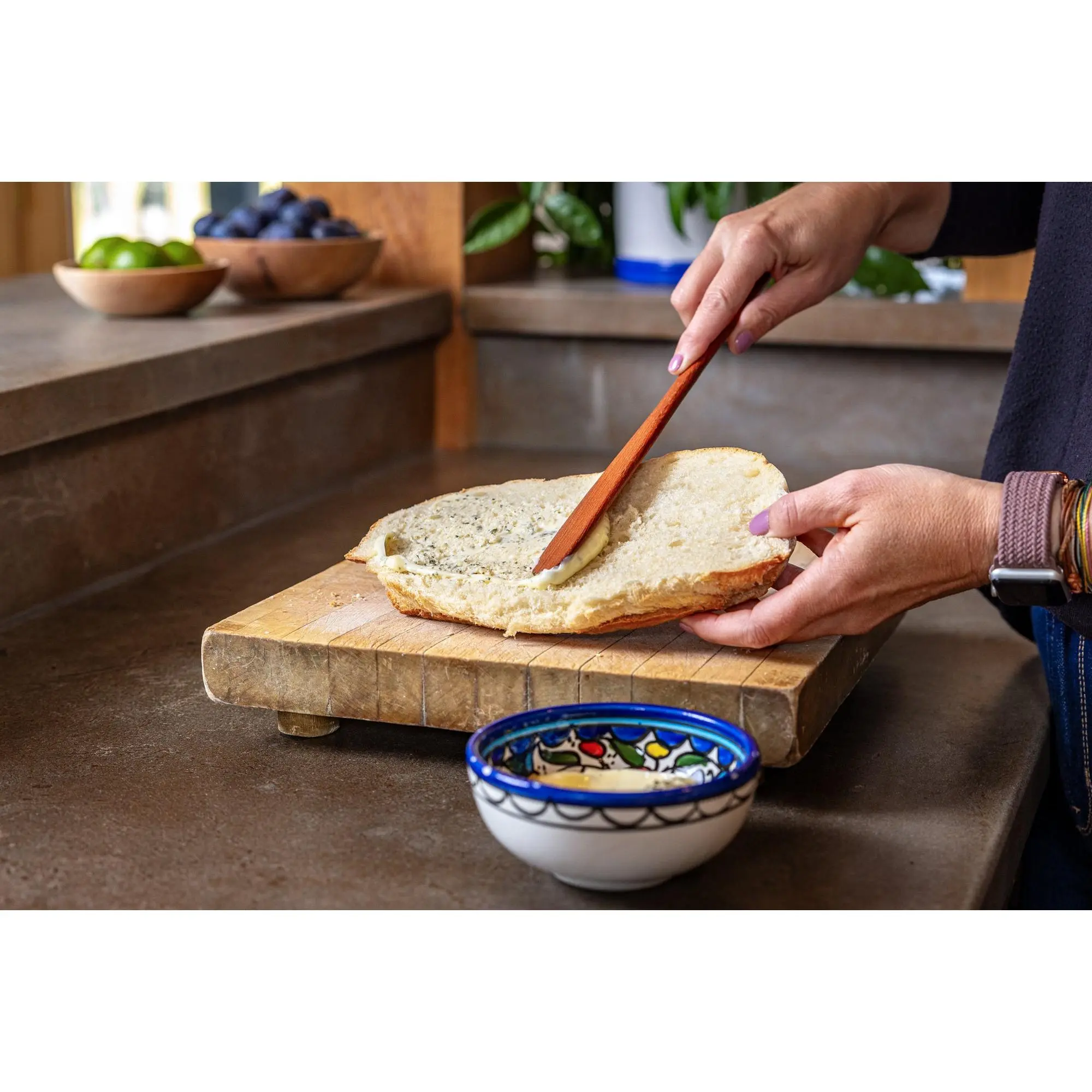 This wooden spreader is a true multitasker, it can stir, spread, scoop and it is actually pretty good at sautéing too. It will be a functional addition to your cooking collection. The wide spreading surface lets you cover the entire sandwich in one pass. The rounded handle design makes this an easy tool to get children involved in cooking as well.