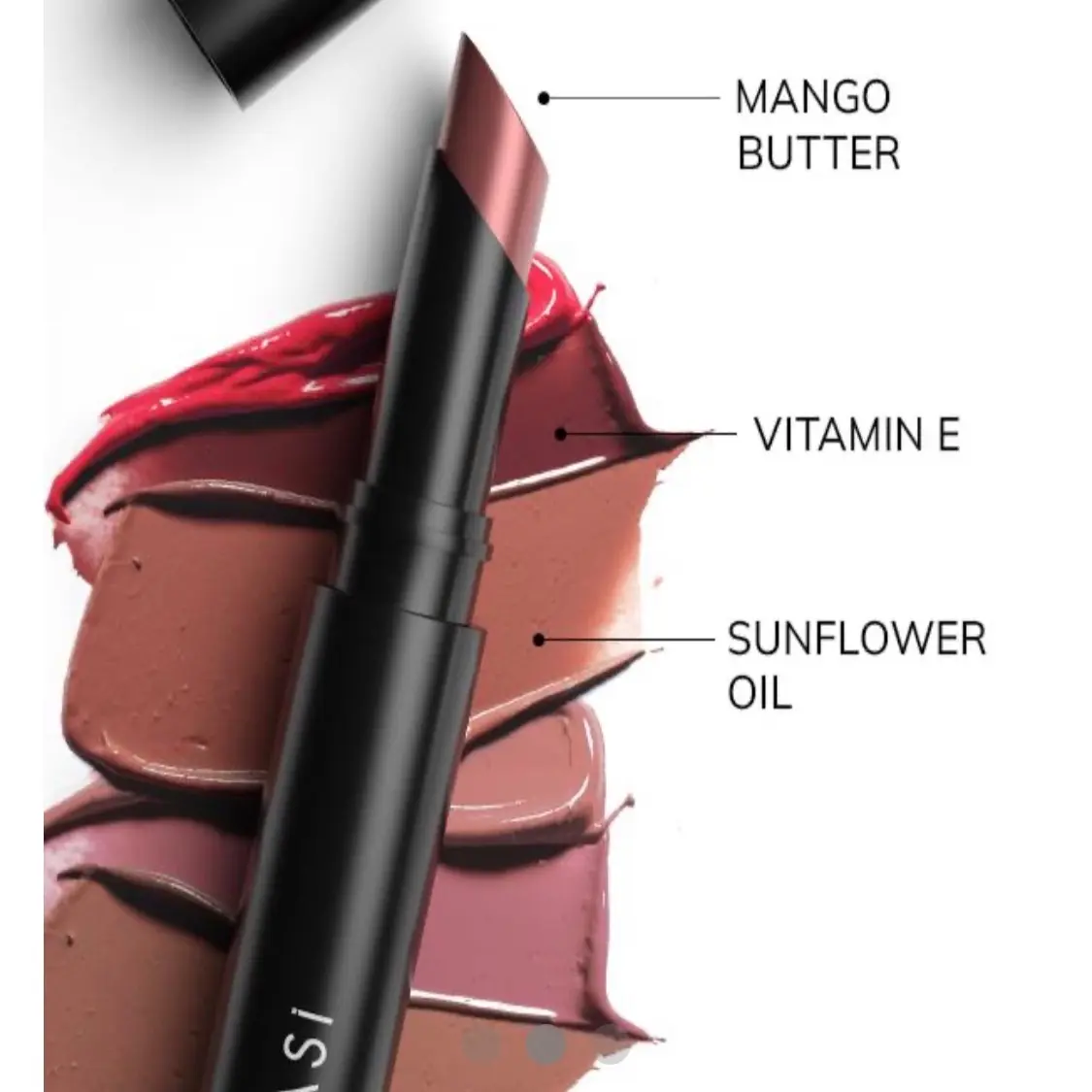The formula is creamy, free from parabens and vegan-friendly, ensuring a smooth and effortless application that wraps your lips in ultra-comforting, long-lasting color.