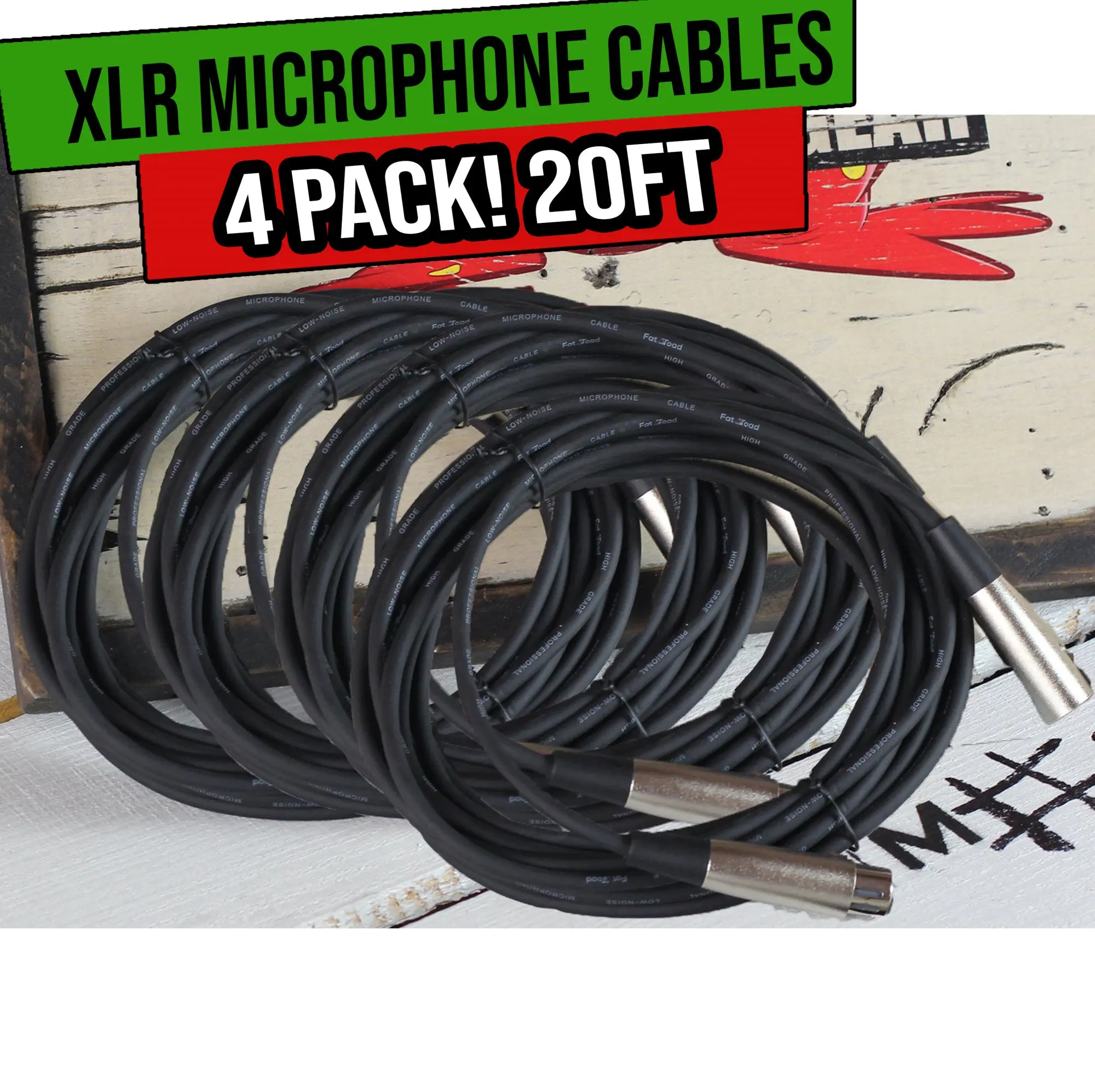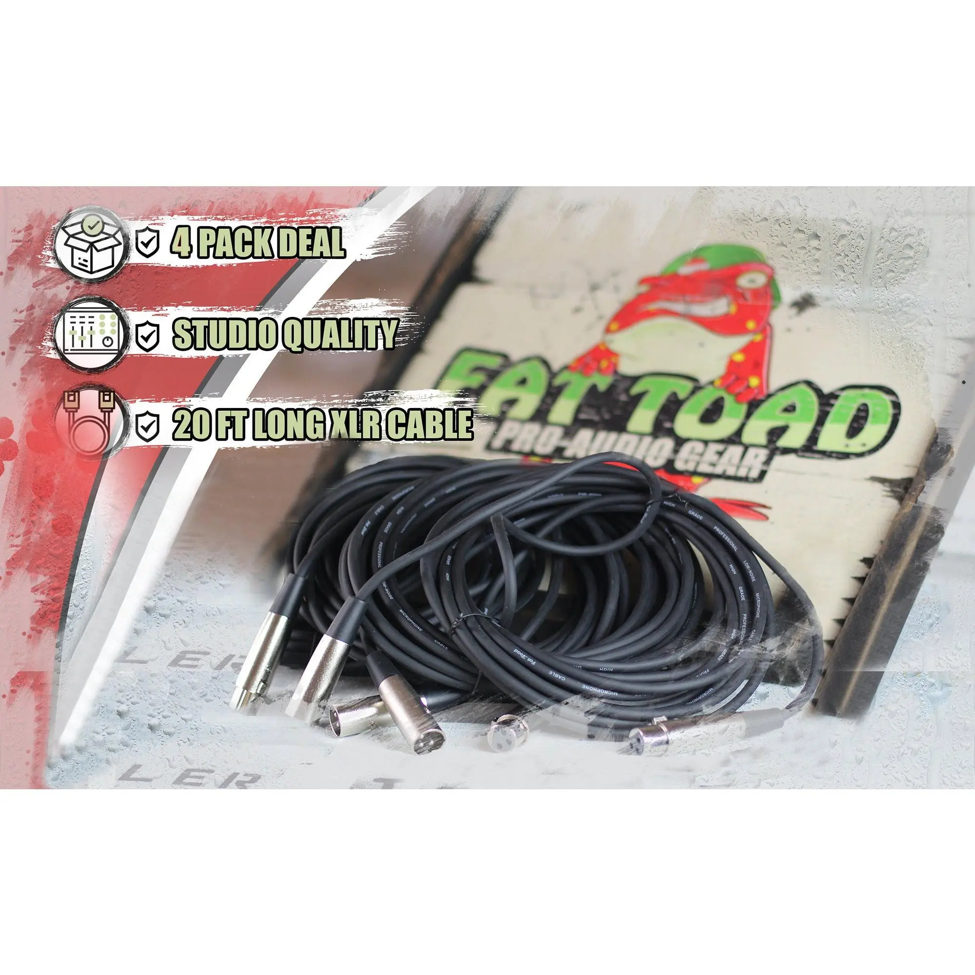 Microphone Cables by FAT TOAD | (4 Pack) 20ft Pro Audio XLR Mic Cord Patch Extension with Female & Male Connector | 24 AWG Shielded Wire & Balanced for Recording Studio Mixer | Live Sound Stage Gear