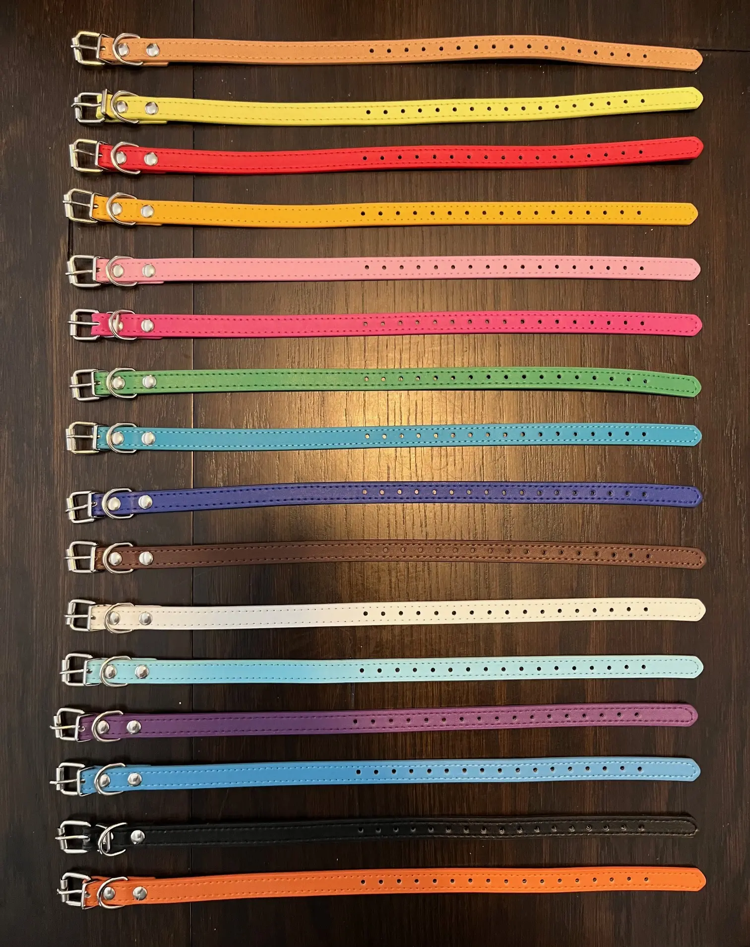 Perfect for your small pet. Personalize your pets' accessories and show them off! Add a charm to compliment the collar and tag. Leather is a good choice for collars as it is strong, long-lasting, and easy to clean.