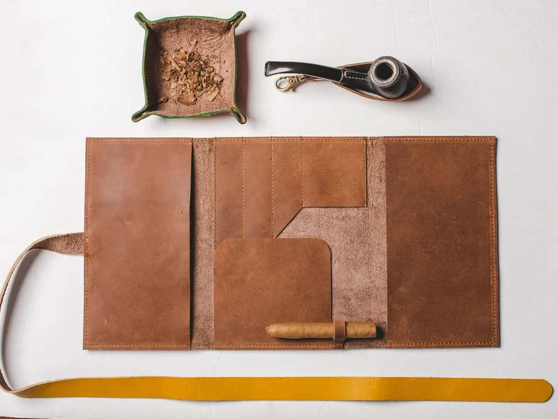 Keep your marijuana pipe and accessories organized and stylish with the Ox and Bulls Leather Marijuana styled Pipe Bag and Storage Case.