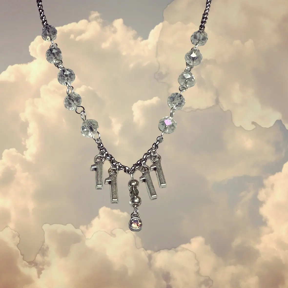 Your angels (or spirit guides) guide you through your thoughts, feelings, words and visions. They also show you 'signs' - that is, things that you see repeatedly with your physical eyes. One of the signs is repetitive number sequences. The angels always seek to give us guidance and answers. When they call our attention to number sequences, it is a positive sign of their devotion, love and power. When you notice a number sequence, listen to your angel's guidance that comes through your feelings, visions and thoughts. The more you notice these signs, the more frequently they will appear in your life. Once you understand the 'signs' meanings and accept that they are not mere 'coincidences', but important and purposeful events and messages, you will experience a close and clear communication with your angels. You will discover spiritual signs and messages all around you, all the time. *info pulled from Joanne Sacred Scribes* [All necklaces made with sterling silver chain and crystal beads]