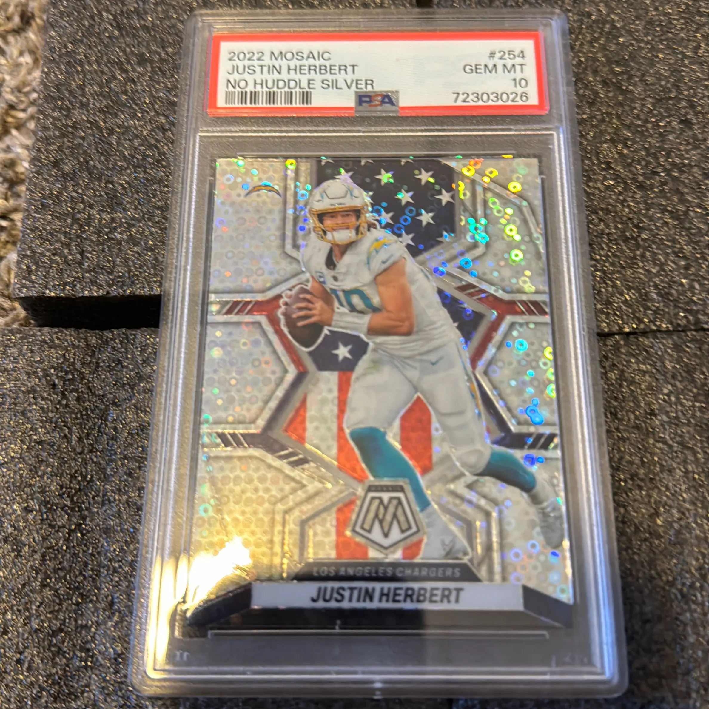 2022 mosaic, no huddle silver, Justin Herbert, PSA 10