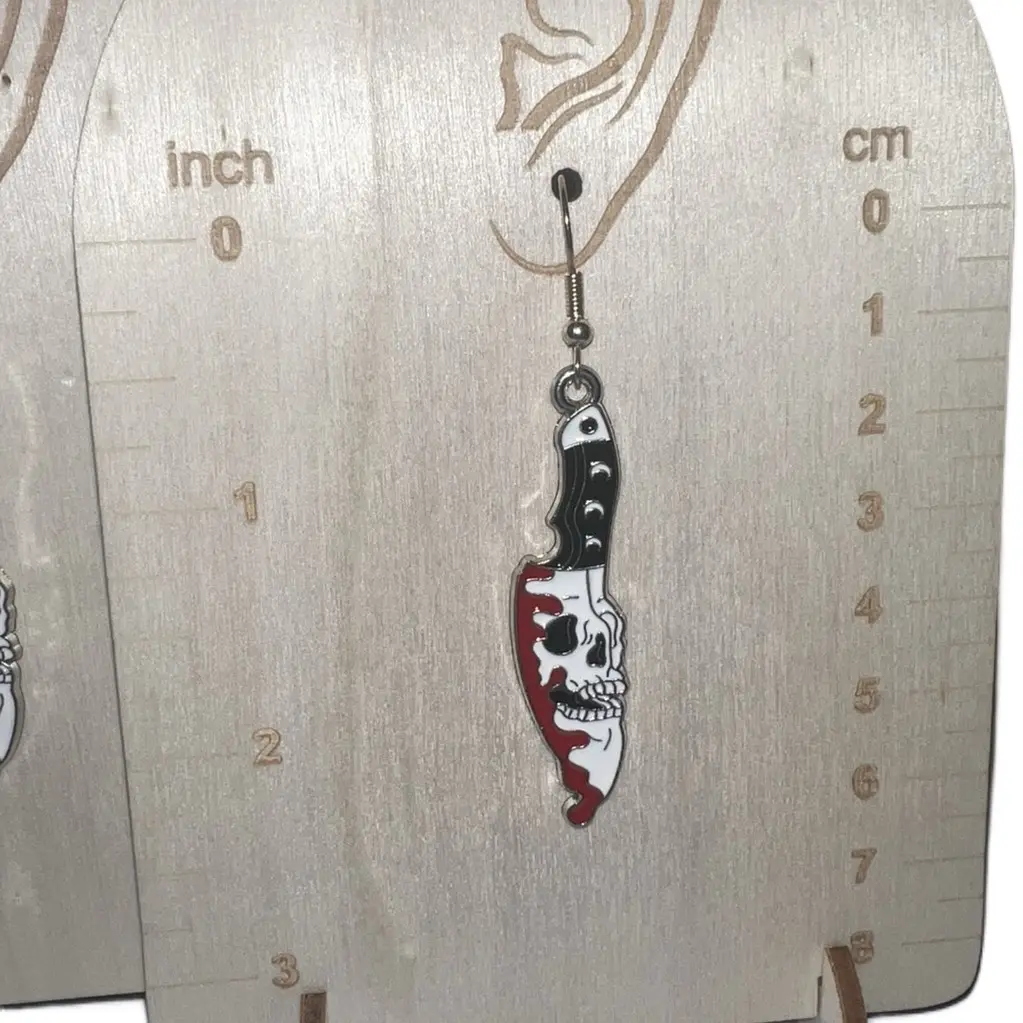 Whether you're dressing up for Halloween or simply looking to make a bold fashion statement, these Horror Knife Earrings are sure to turn heads. Don't miss out on your chance to own this one-of-a-kind accessory!