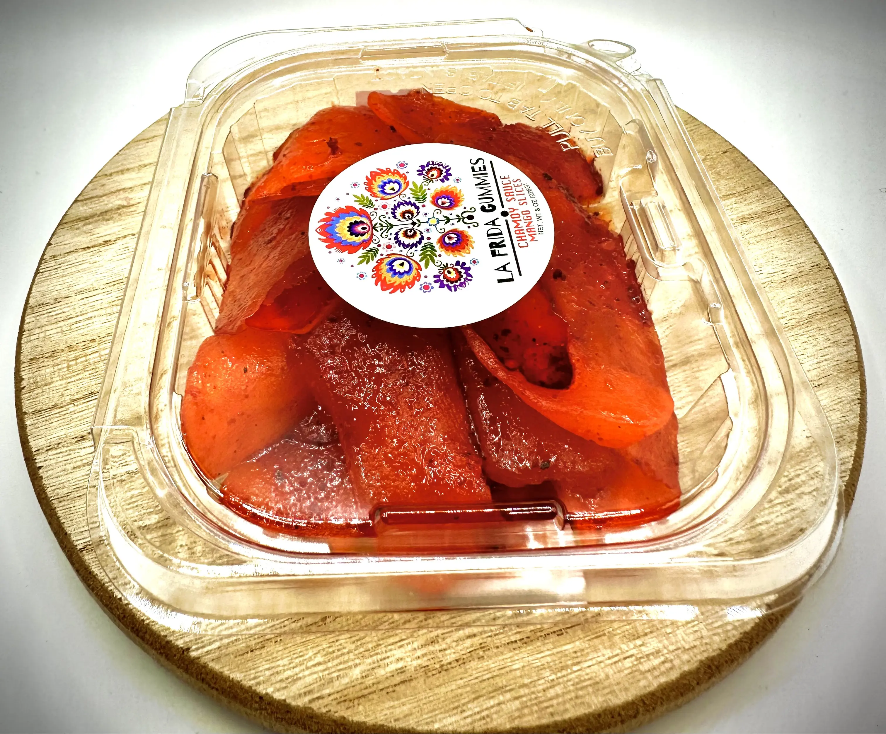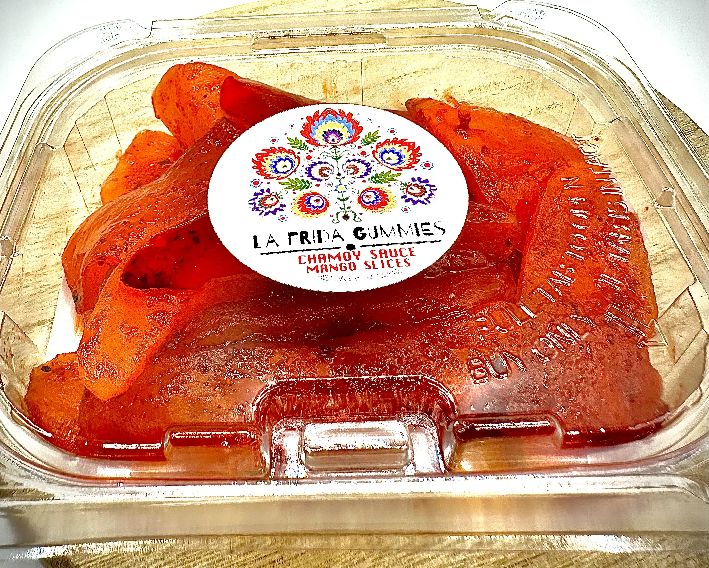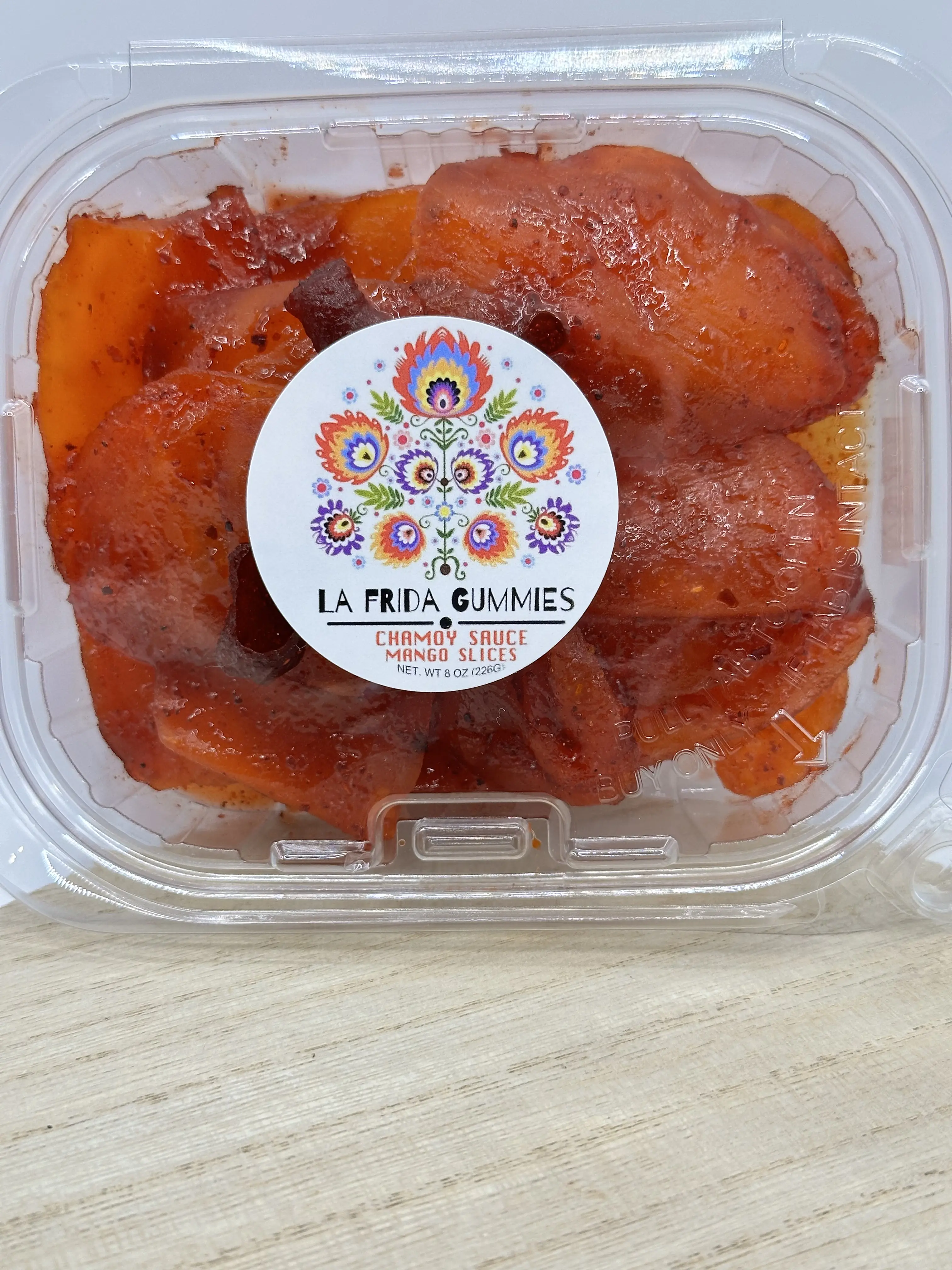 Indulge in the irresistible taste of Dried Fruit Mango with Chamoy from La Frida Gummies. Made from all-natural and high-quality ingredients, this snack is perfect for all ages.