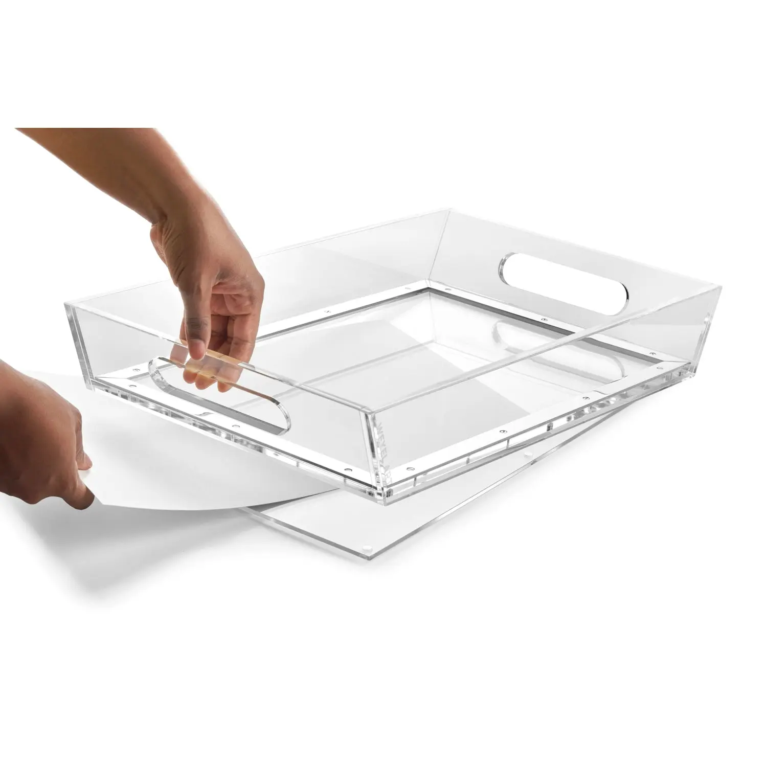 Clean acrylic tray with a soft, dry, lint-free cloth, or dish soap and water when needed. Do not use glass cleaners or spirits, which can dull the surface.