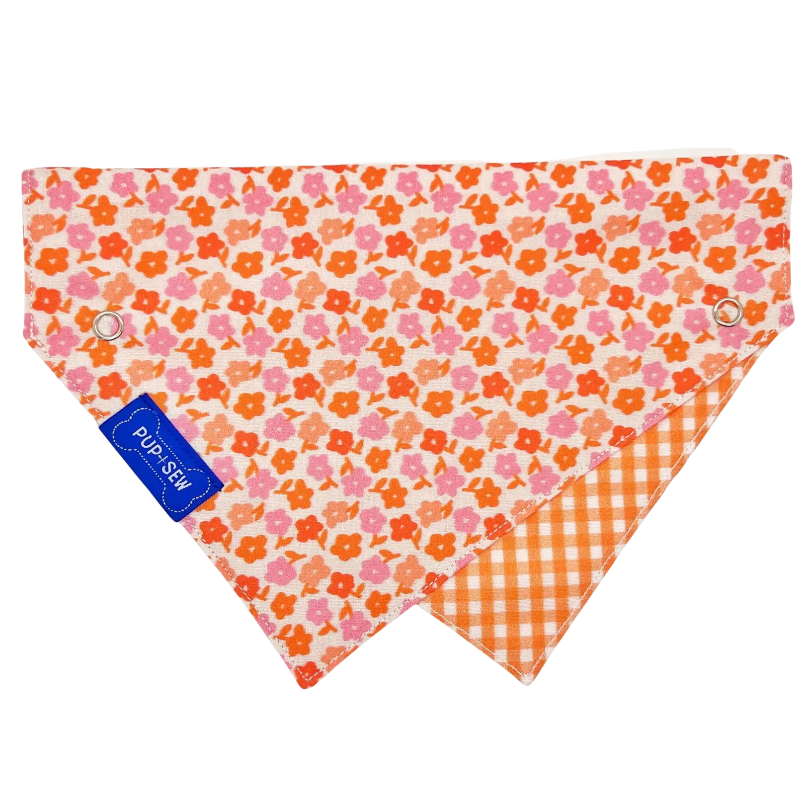 Orange Daisy Dog Collar Bandana, Reversible and Two-Tone