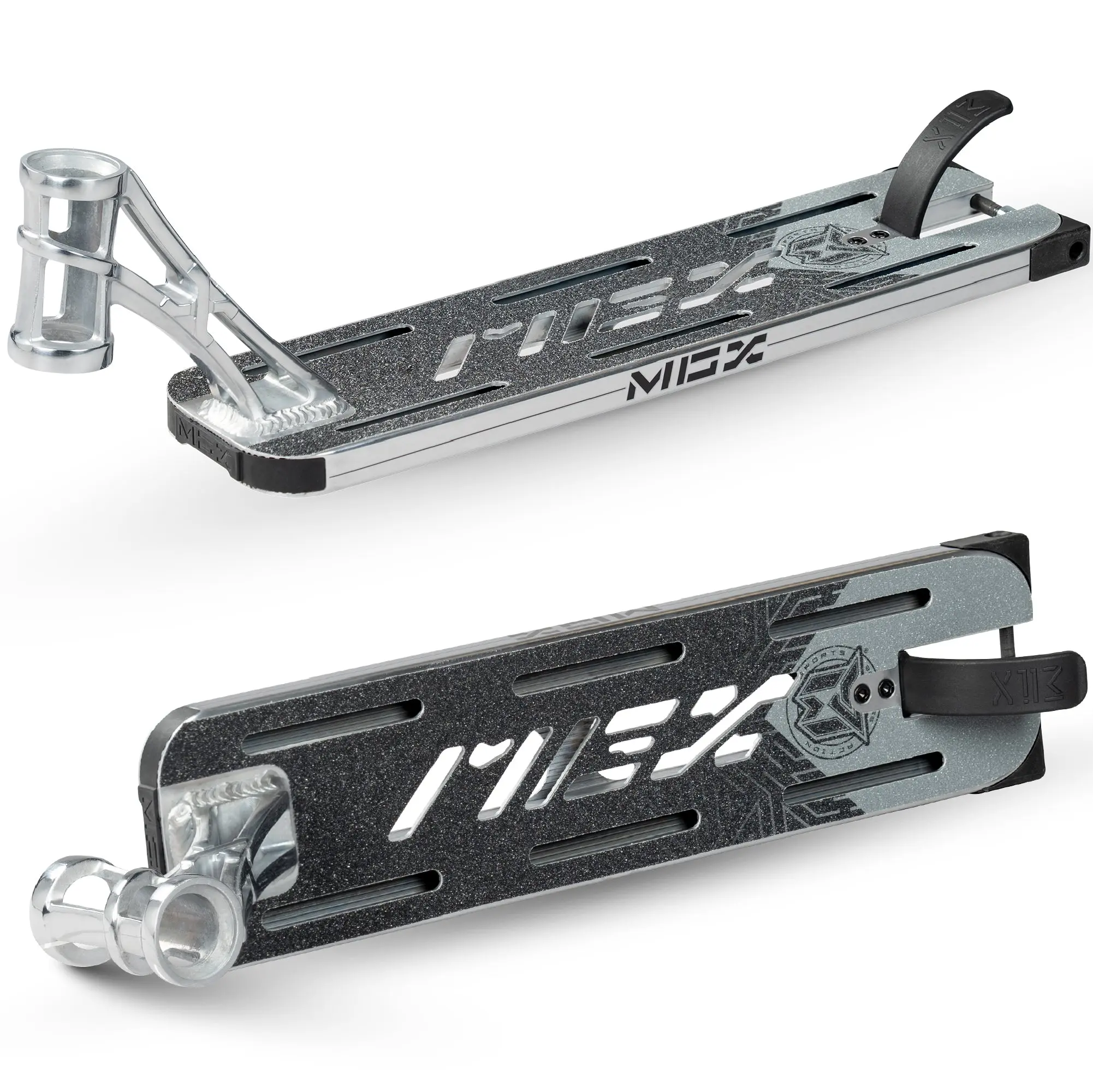 The Madd Gear MGX Extreme Pro Scooter Deck is great for both park and street riding with a large foot platform and boxed deck inserts for locking onto your grinds.