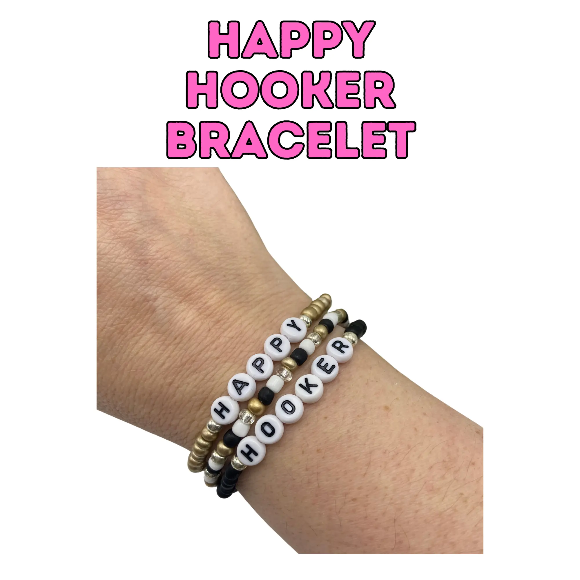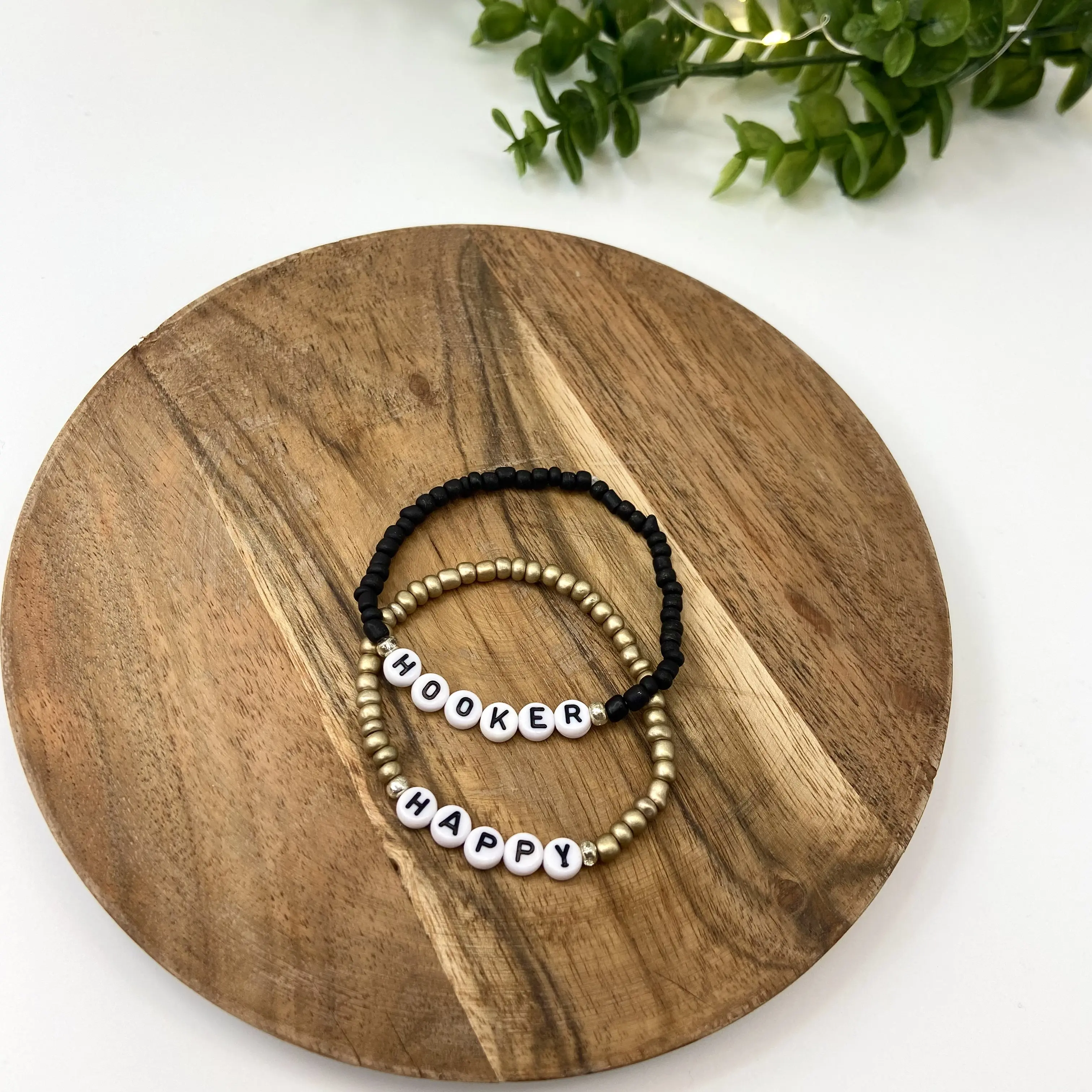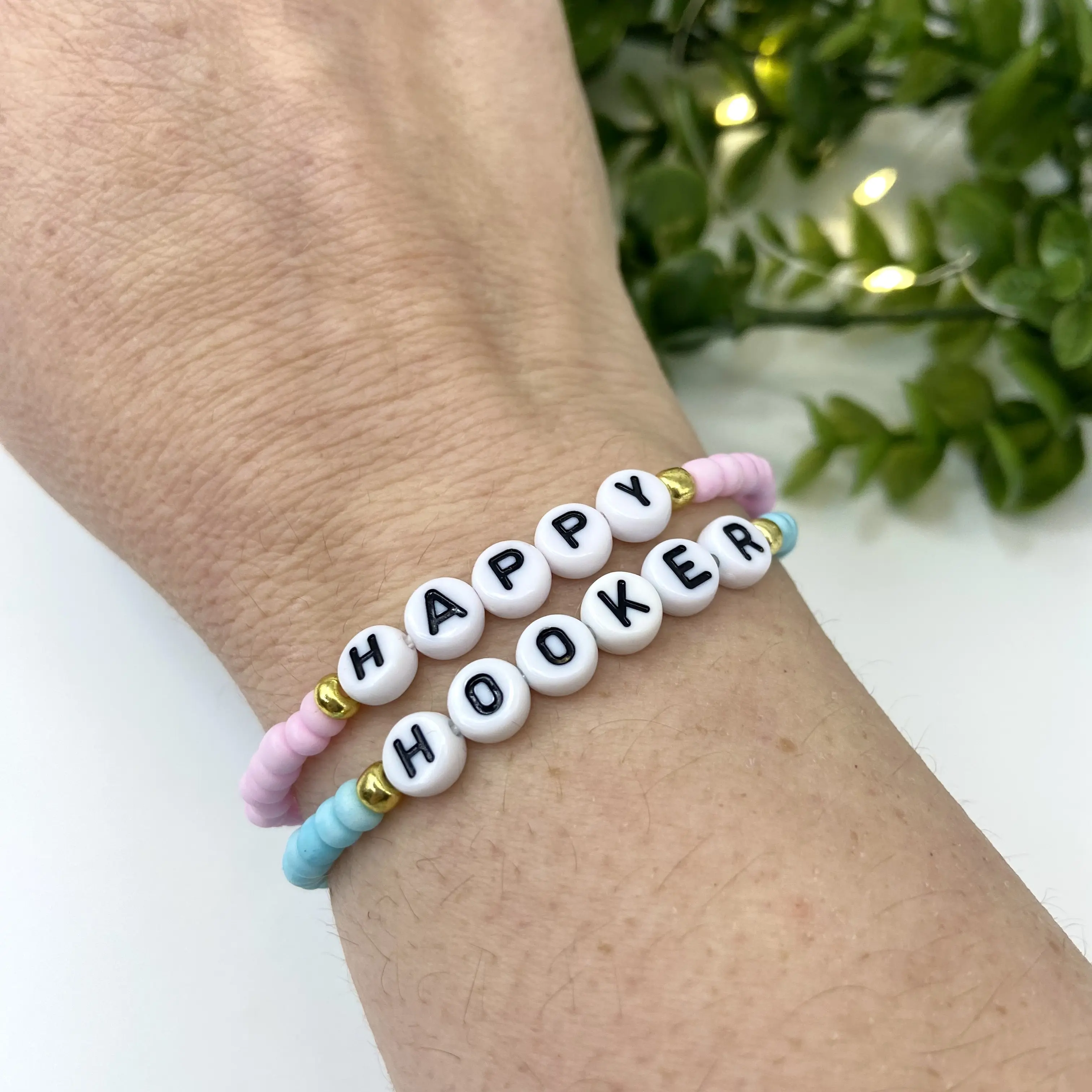 Fun and stylish Happy Hooker stacking beaded bracelets comes in a set of 2.