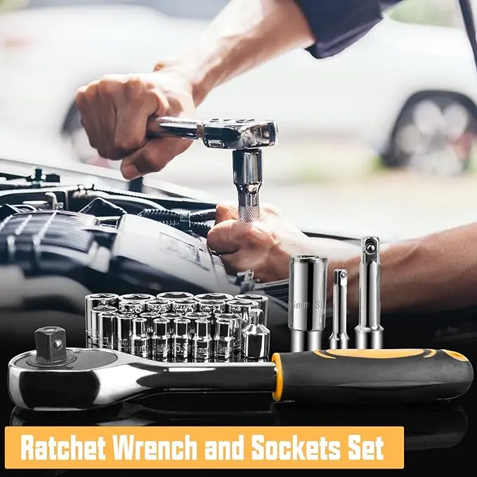 ·[Special Manufacturing Process] The main tools of the mechanics tool set are forged from high hardness carbon steel, the surface is chromium plated with carburization by high frequency heat treatment process, and then polished and polished to increase the luster after molding, and then embedded in the ergonomically designed PVC material handle.