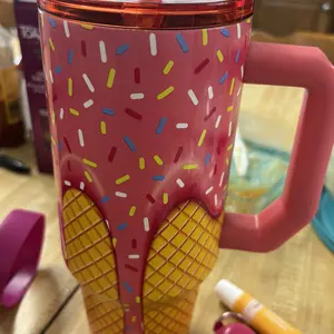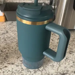 Highly recommend the 50 oz tumbler. I can sit a Sonic Route 44 cup inside as advertised (not pictured). No more worries about the cup breaking or falling out of my hands on travel days. Also, the cup still had ice in it 18hrs later. The cap and straw that's included didn't leak when tested.
