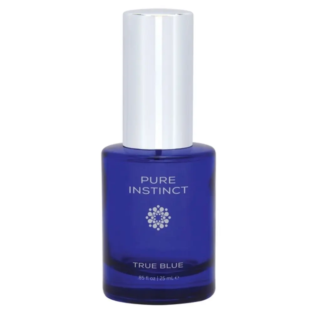 Pure Instinct True Blue Pheromone Infused Fragrance .85 fluid ounce from Classic Erotica. Enhance romance. Inspire desire. Seduce the senses with Pure Instinct True Blue fragrance. The succulent notes of Australian mango and mandarin, a come hither hint of cinnamon and exotic blend of honey and white musk are formulated to inspire desire. Pheromone infused fragrance blends with skin pH to create a sexy scent unique to you. Designed to enhance sex appeal. Boost confidence. Increase attraction. Features: blends with skin pH to create a one of a kind scent. Enhances your natural pheromone production. Increases sex appeal. Paraben free, Gluten free, Glycerin free. Product not tested on animals. Ingredients: Alcohol Denatured, Fragrance, Water, Reconstituted Andronone, Copulandrone and Copuline-alike Parfum. Directions: hold fragrance 5 to 7 inches away from skin and apply to pulse points. Reapply as needed. Use day or night. Categories: Erotic Body Lotions, Oils, Aromatherapy, Health and Beauty Aids.