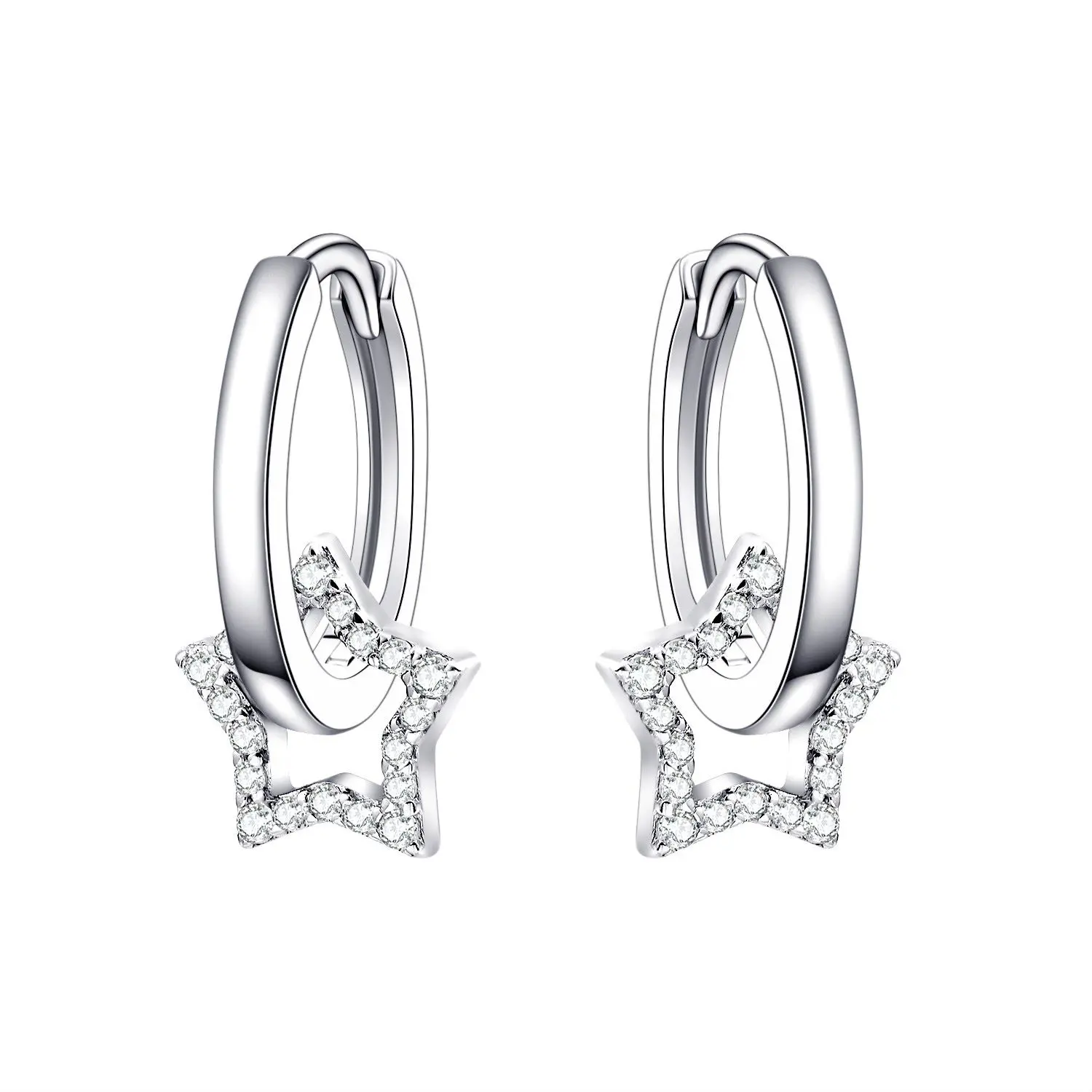 ·Original Design The hoop earrings design with star pendants and glittering 5A zirconia stones. Star stands for hope, bright and purity, it conveys the spirit of longing for freedom and brings happiness.