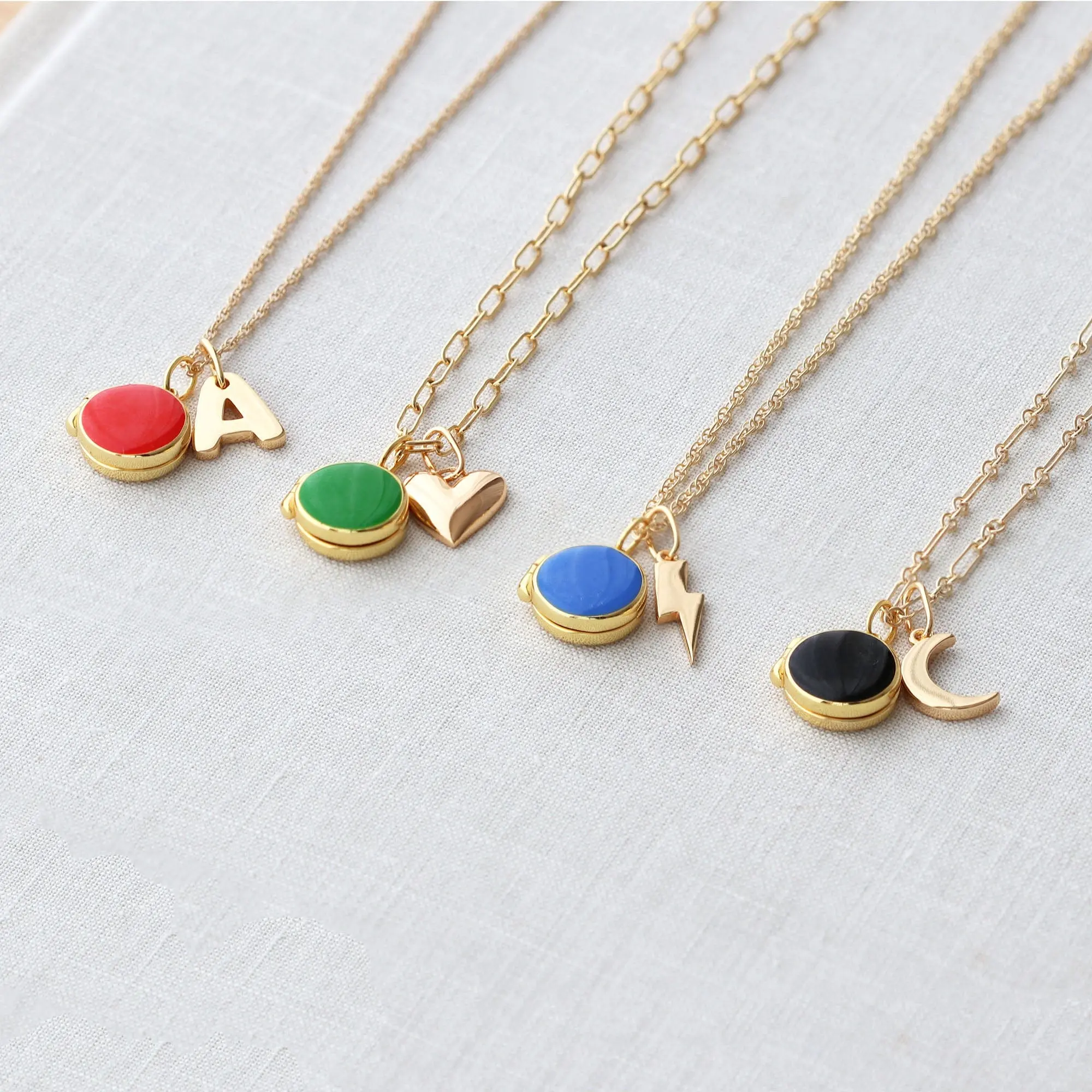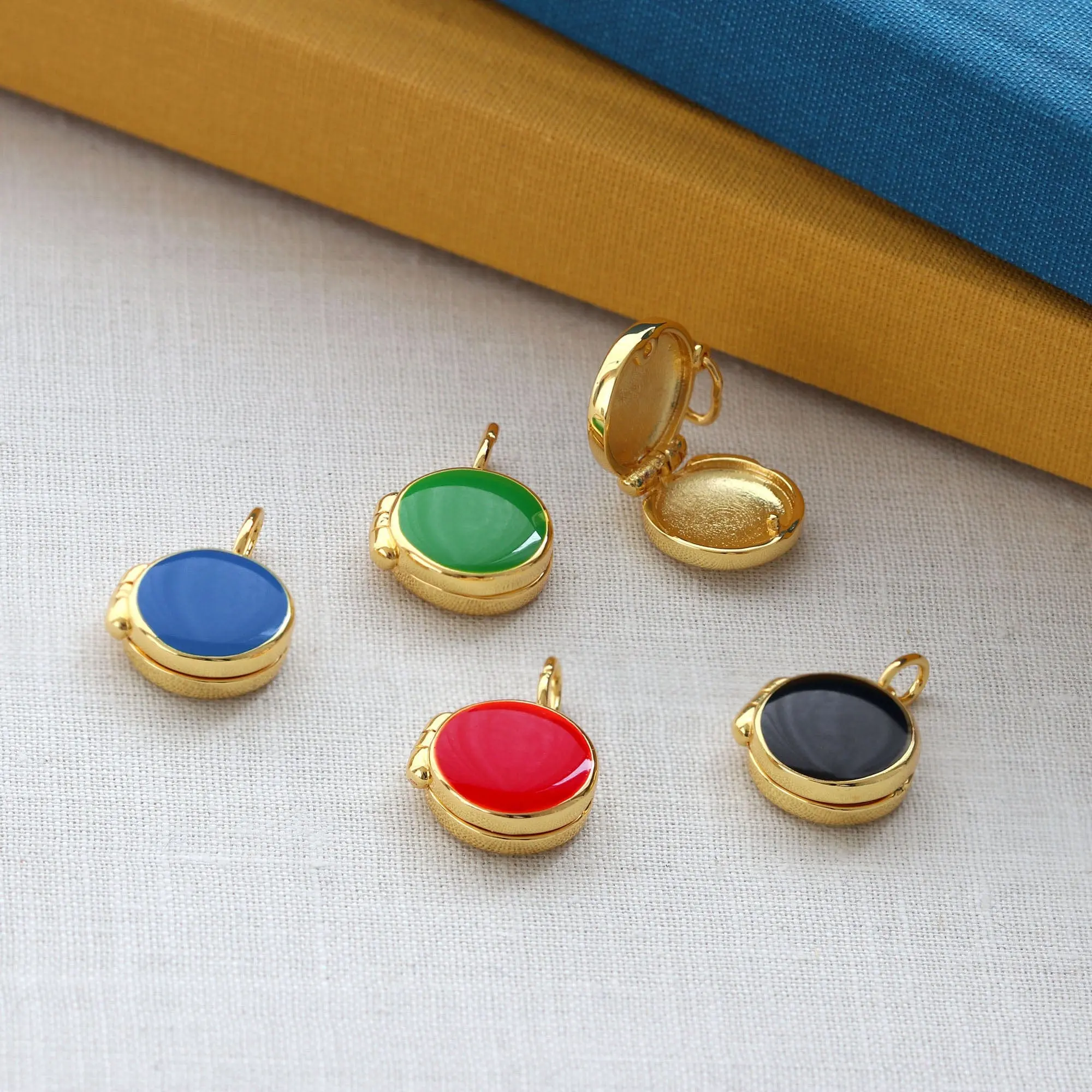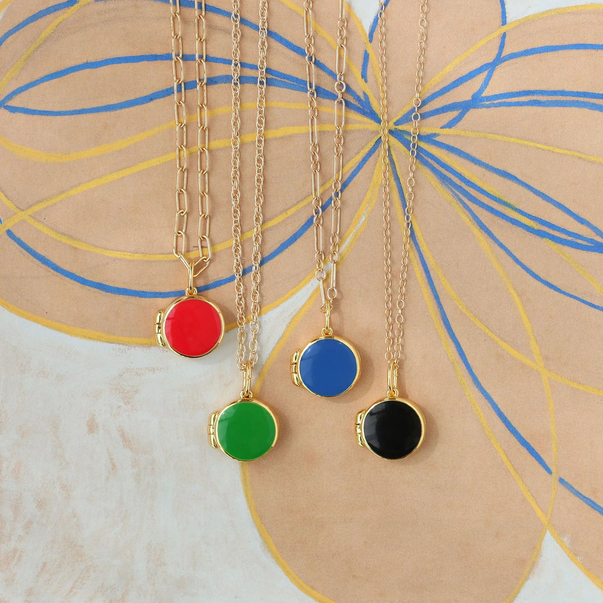 Keep your loved ones close to your heart in our new round enamel locket charms. The classic round shape has been designed to fit a tiny portrait or drawing. The locket measures 13mm and is made from sterling silver and plated in 18K gold with a vibrant enamel finish.
