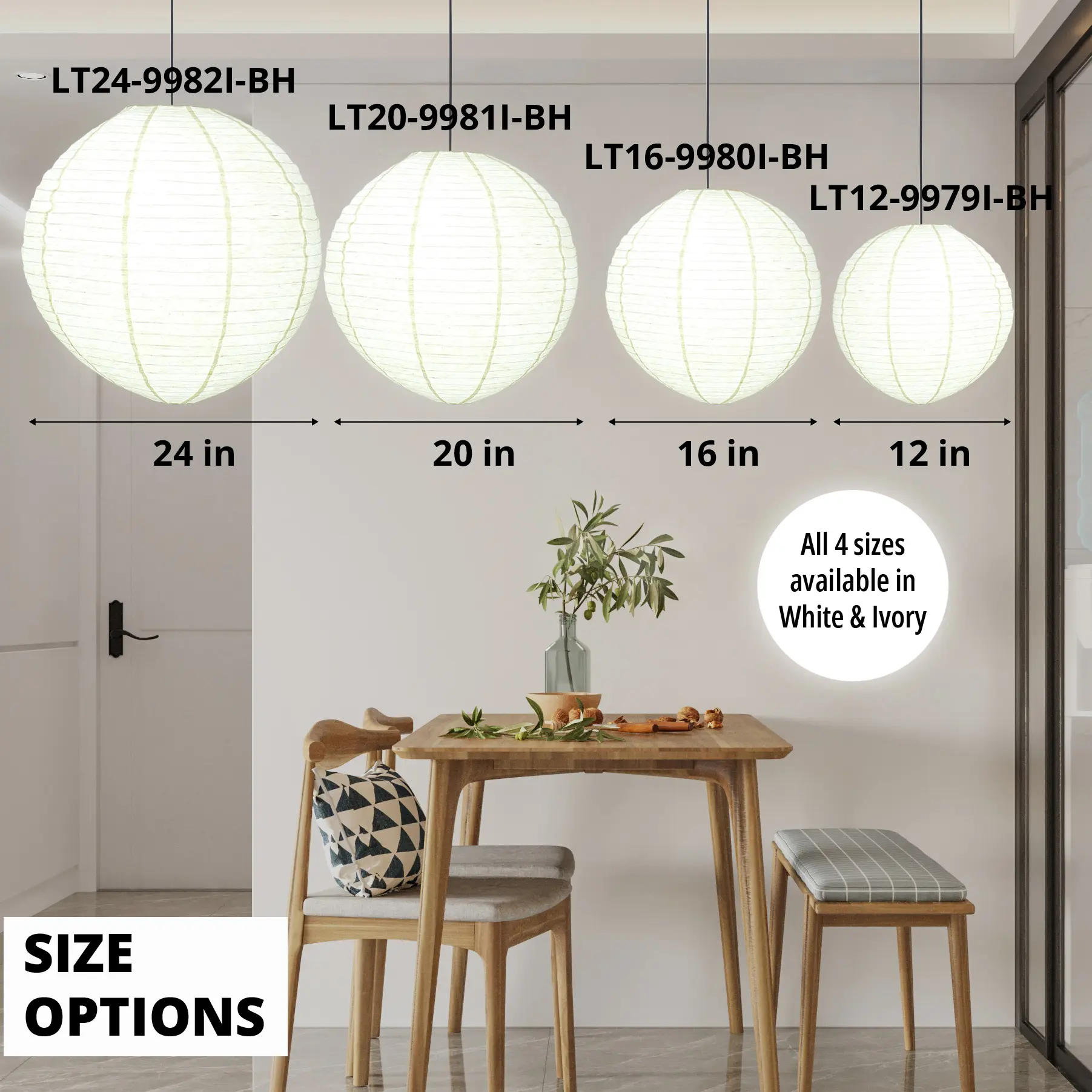 Brighten up any room in your house with our orb pendant light that goes well with any room decor. Use as a single unit or combine different sizes to add more lighting as needed. The shade can be assembled with ease using the metal expander, and the light can be connected to a power source by hardwire installation.