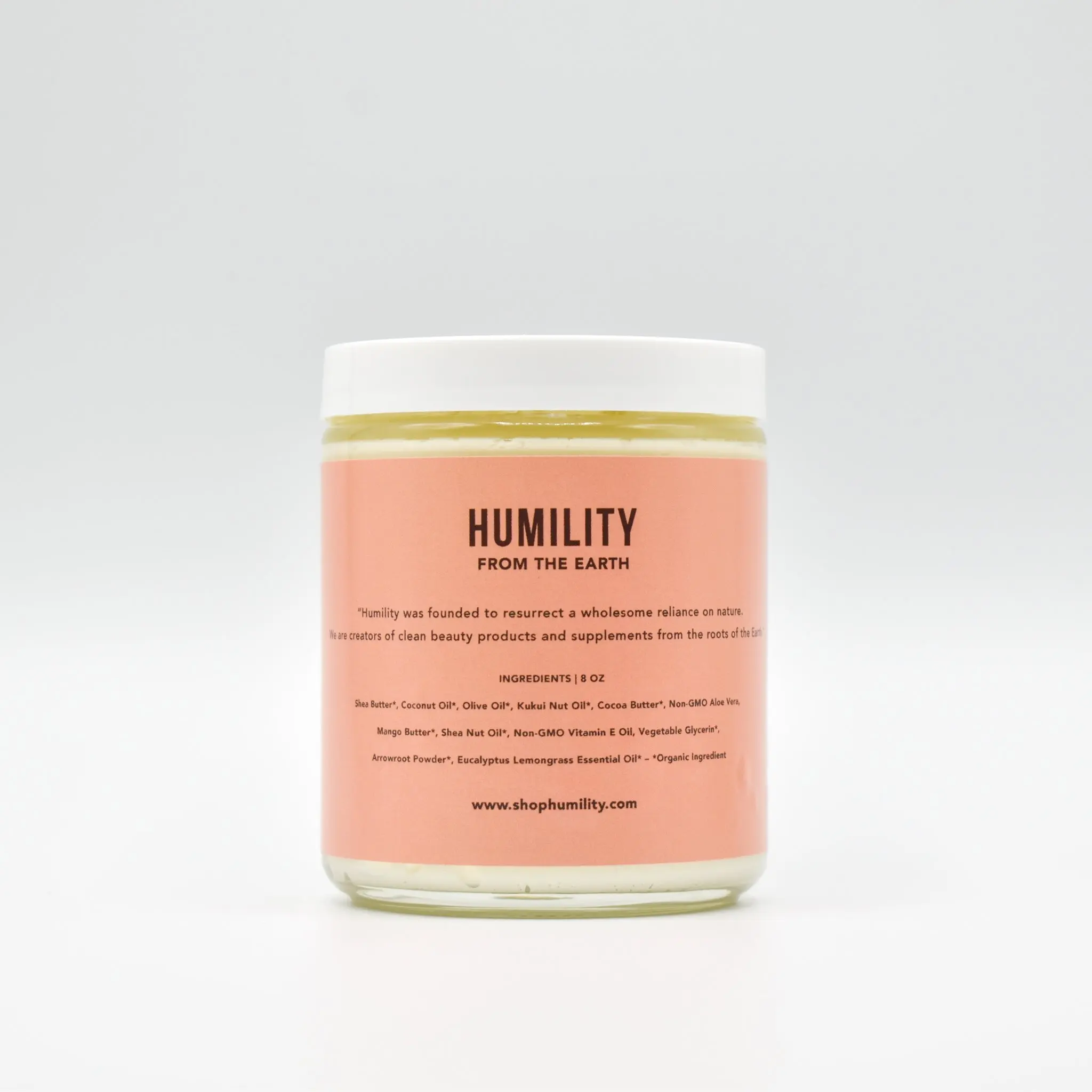 Shea Butter*, Coconut Oil*, Olive Oil*, Kukui Nut Oil*, Cocoa Butter*, Non-GMO Aloe Vera, Mango Butter*, Shea Nut Oil*, Non-GMO Vitamin E Oil, Vegetable Glycerin*, Arrowroot Powder*, Eucalyptus Lemongrass Essential Oil*
