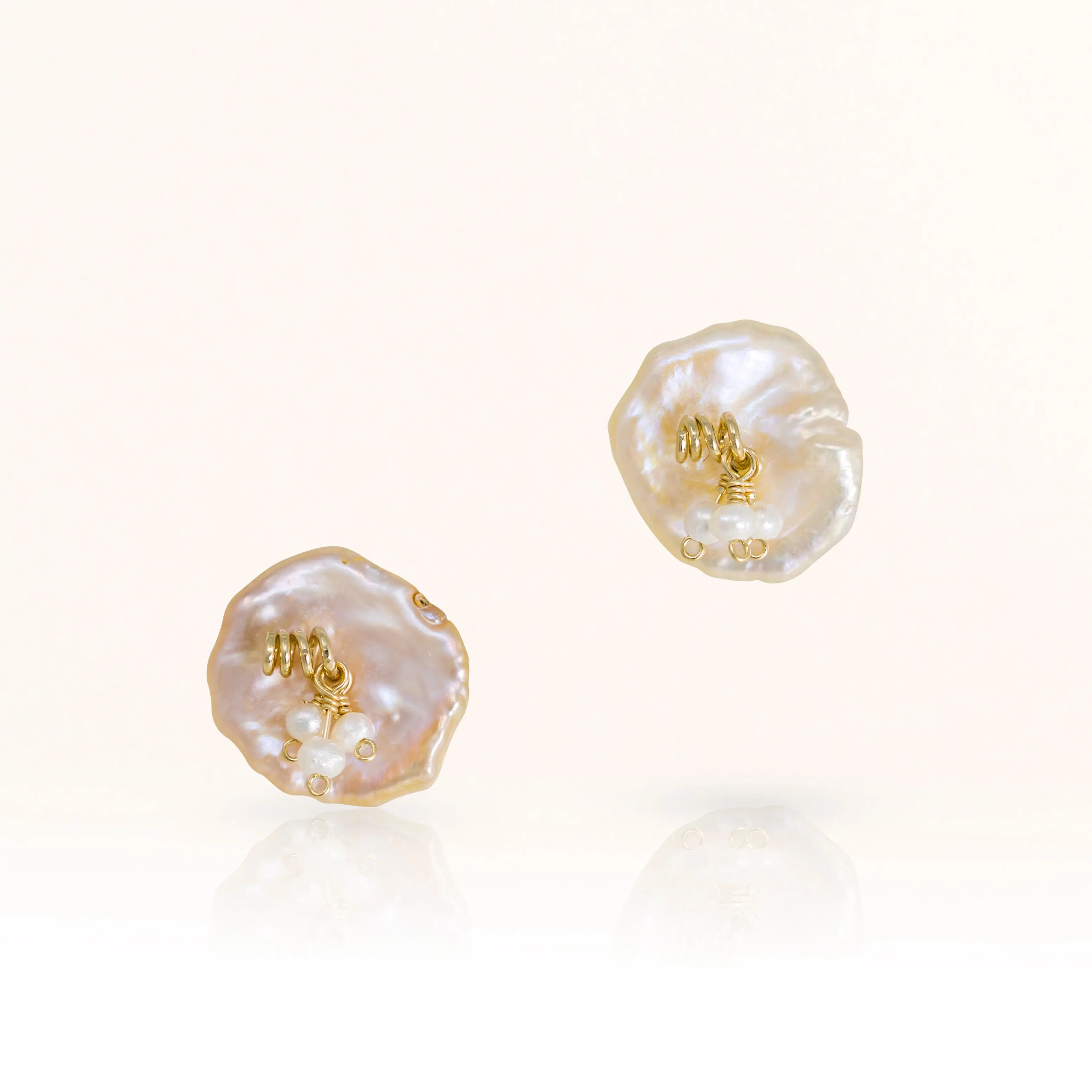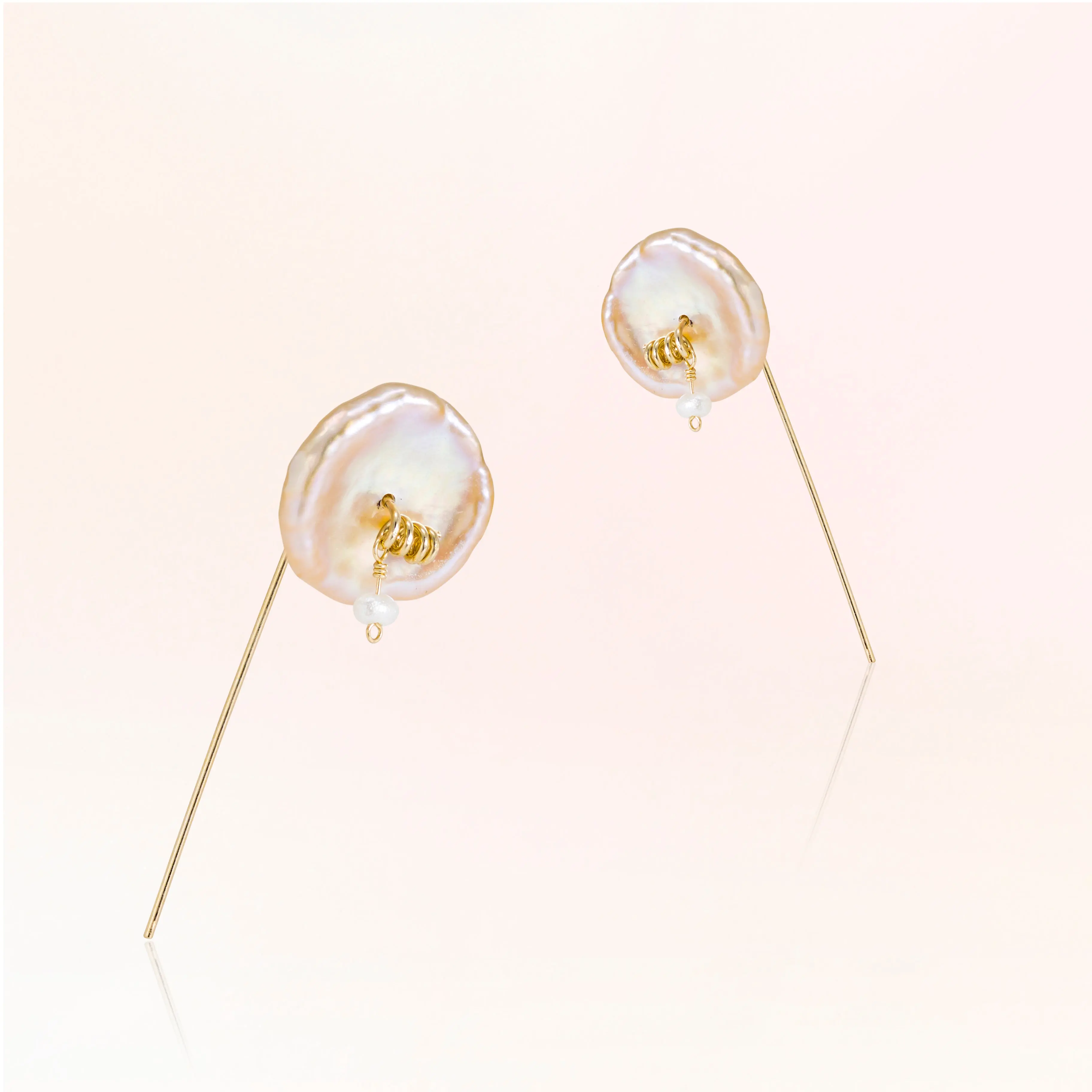 Wire wrapped jewelry with 14k gold fill wire holds pearl beads in a simple design ending in coin pearls in these earrings. Perfect for those that love unique jewelry, this June birthstone makes a beautiful addition to a simple jewelry collection.