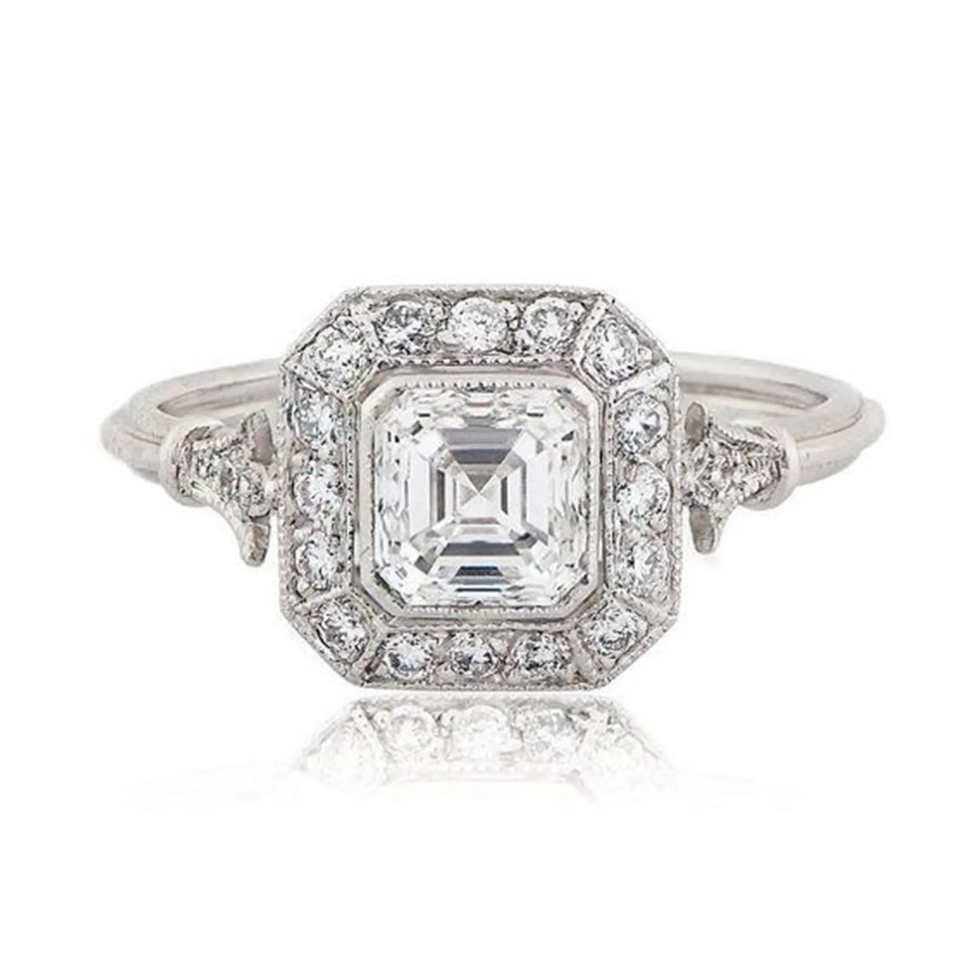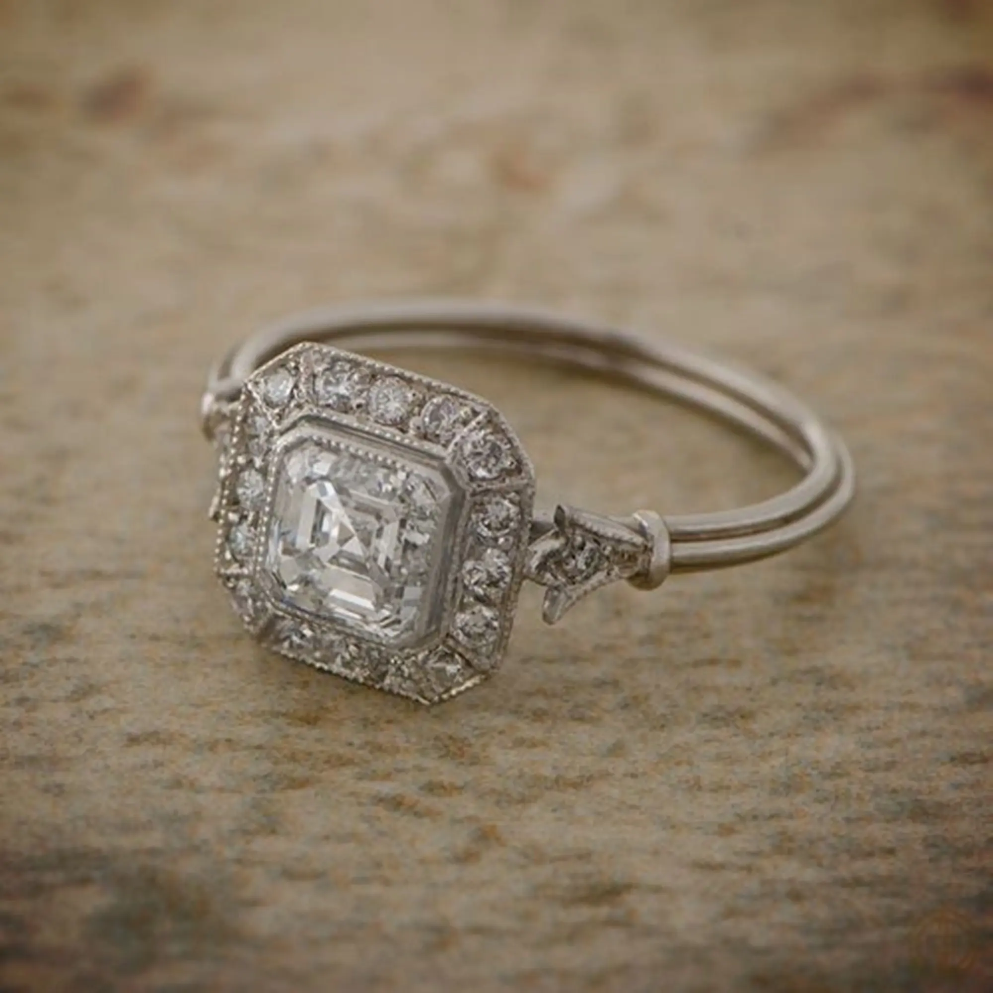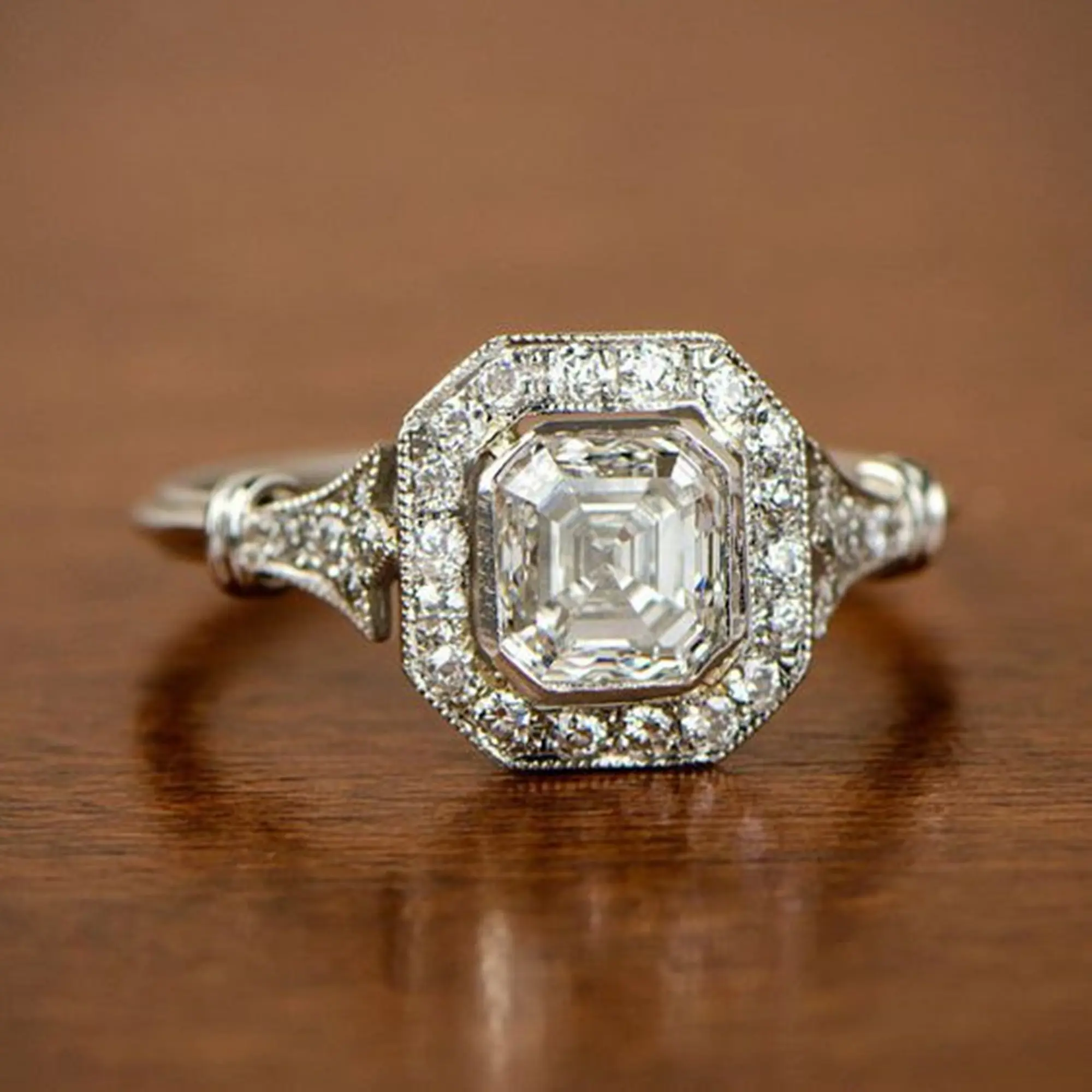 Vintage Edwardian Engagement Halo Ring For Woman's 925 Sterling Silver Wedding Bridal Ring, Birthday Gift