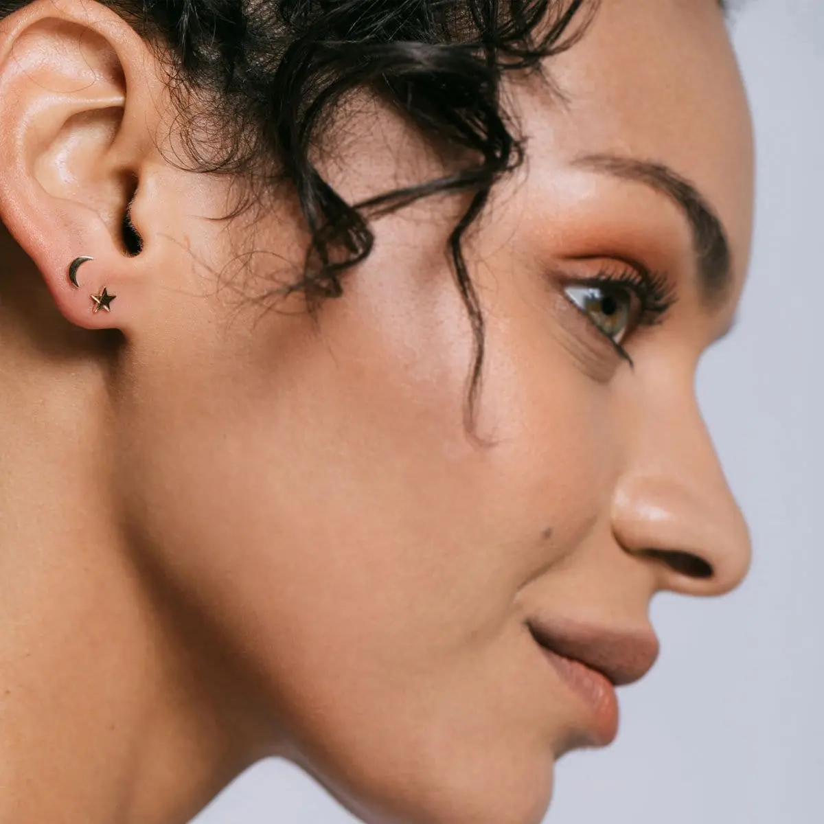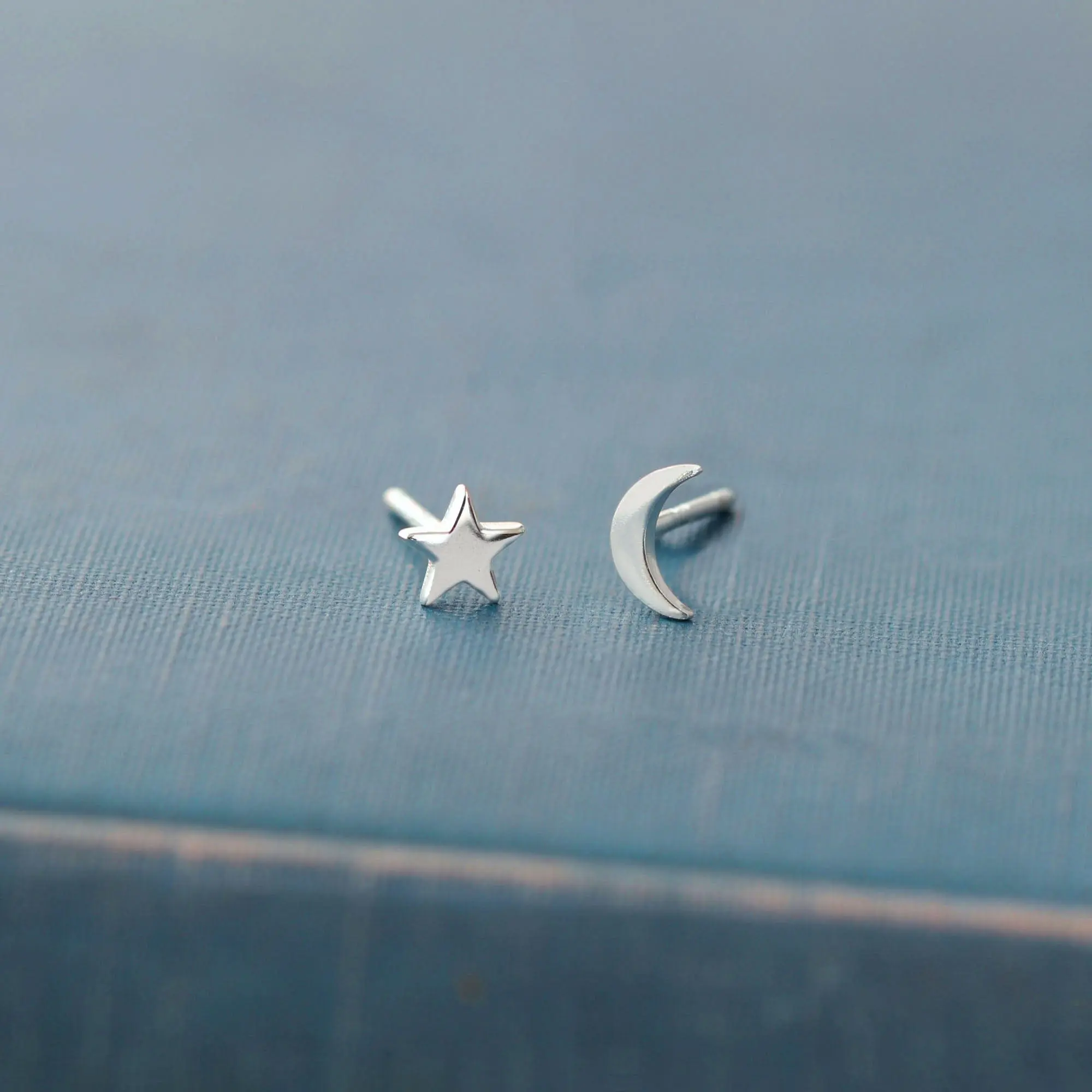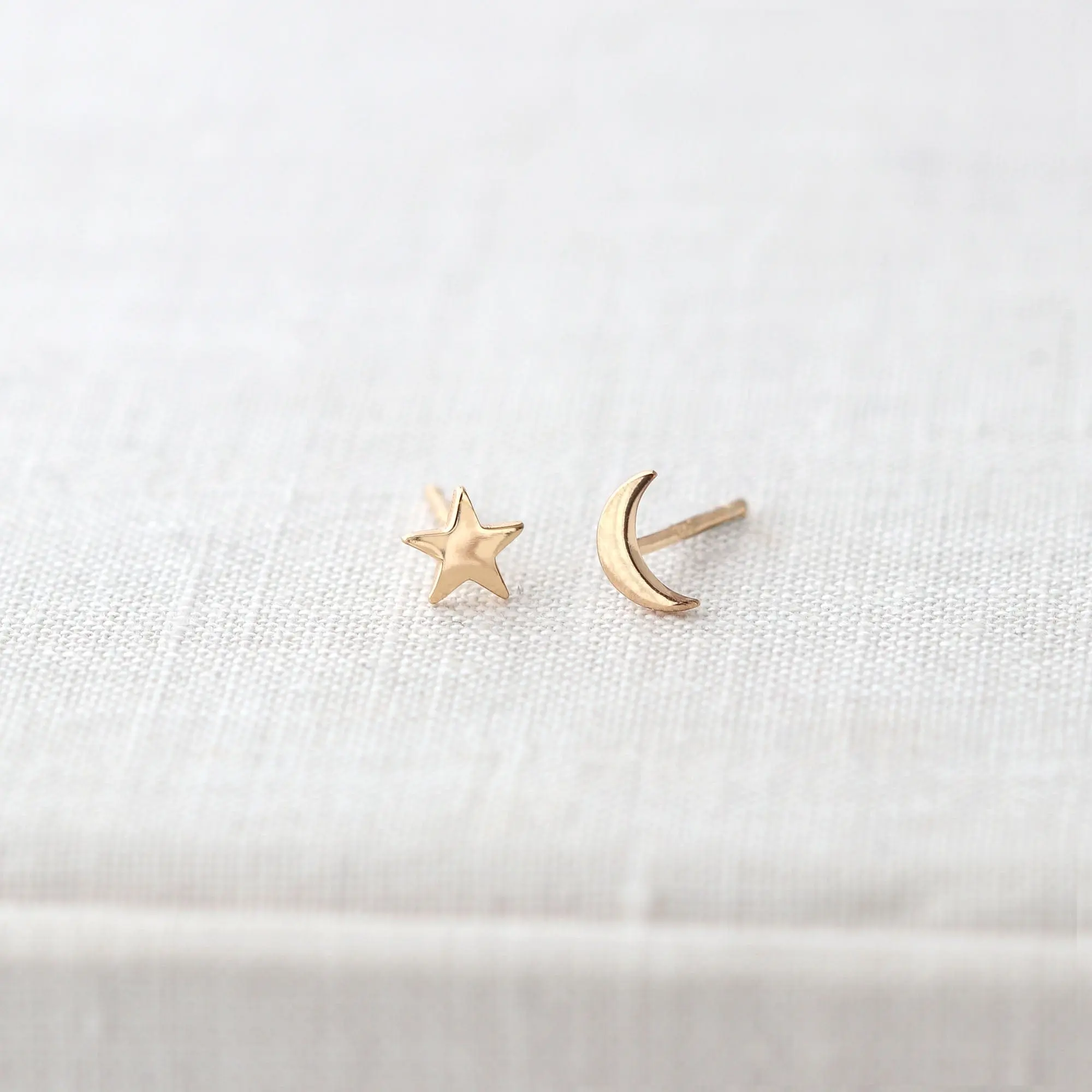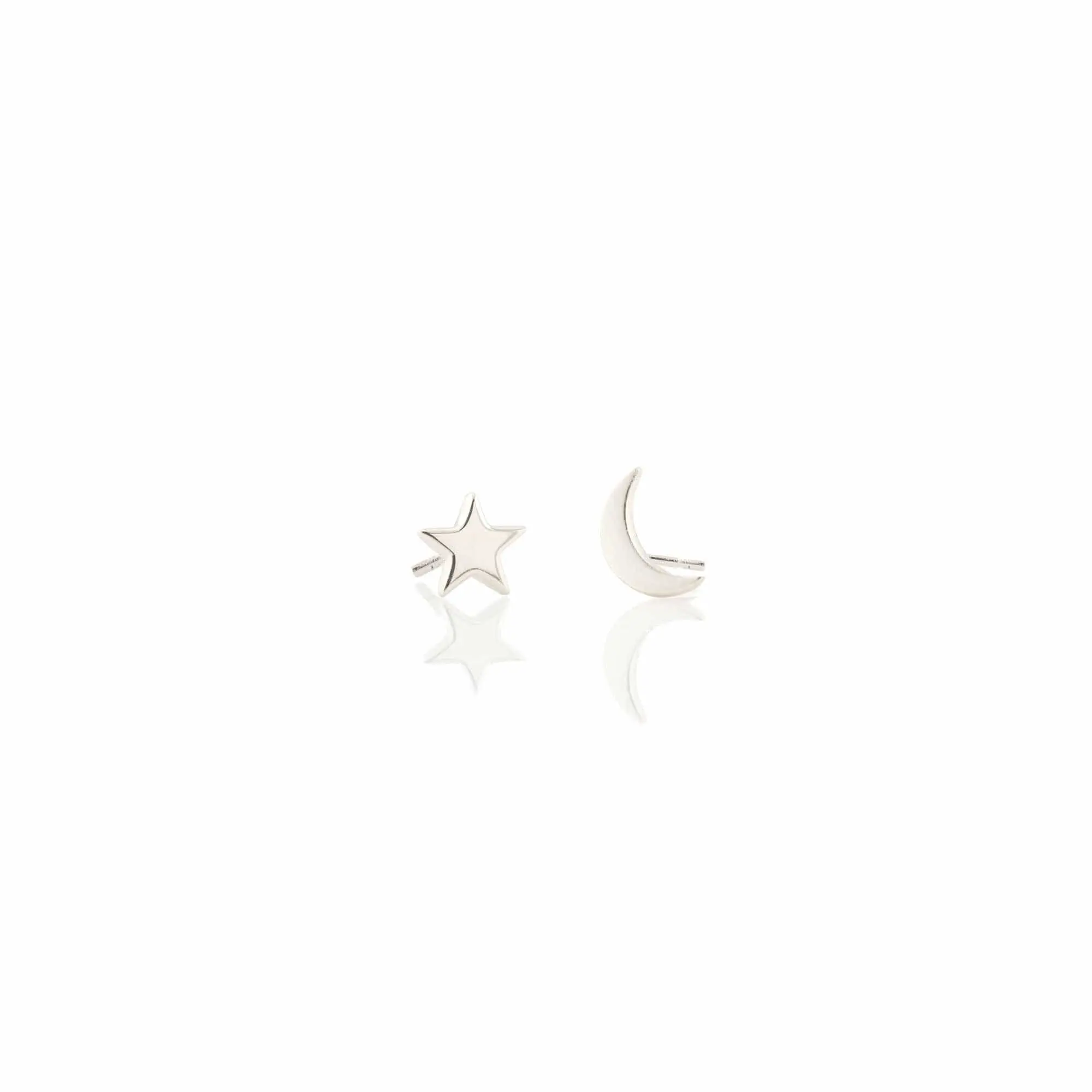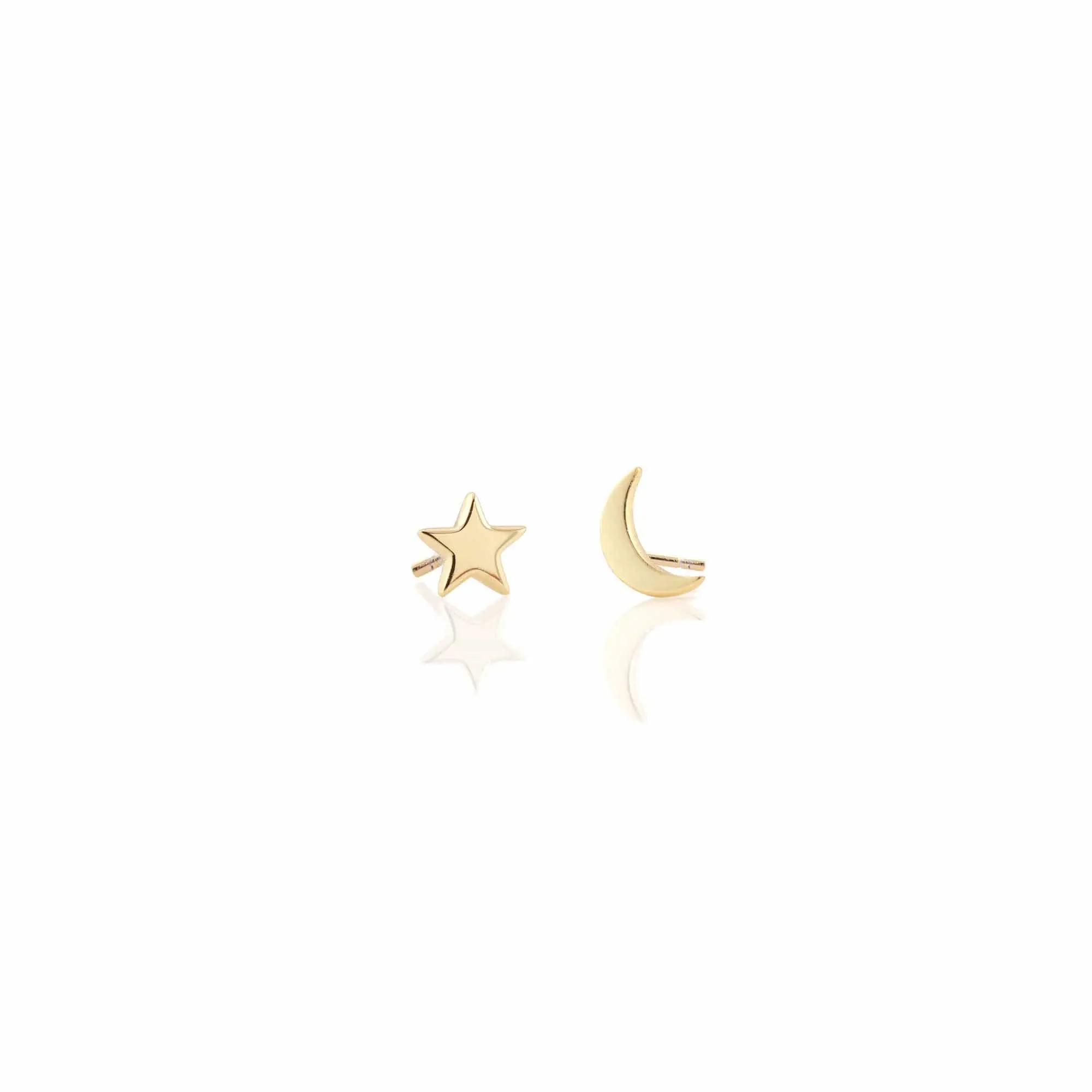 Our most popular mis-matched pair - star and moon stud earrings.