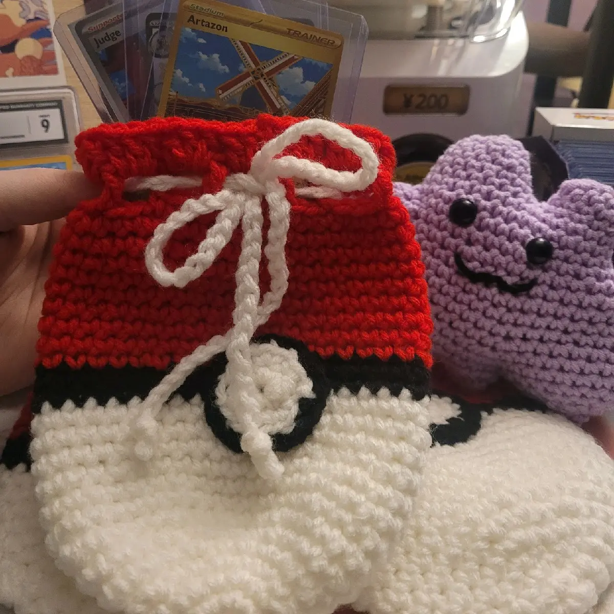 Handmade crochet pokeball bags! Ideal as a gift or to store some of your favorite pokemon cards. Size: 7in long - 5 1/2in wide Can be made in different colors!