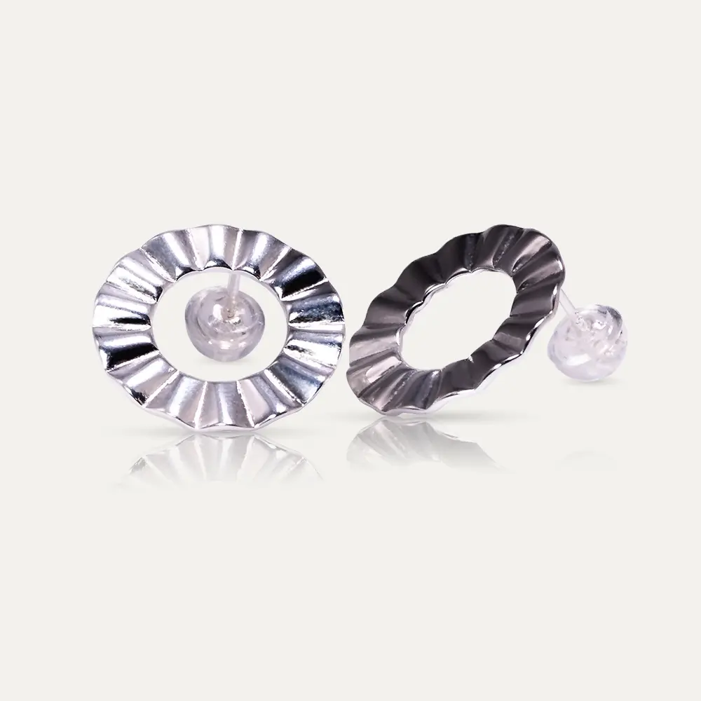 A circle shape design with folds, these earrings make a statement. Evoking a perfect piece of origami and giving a touch of shine in every single fold.