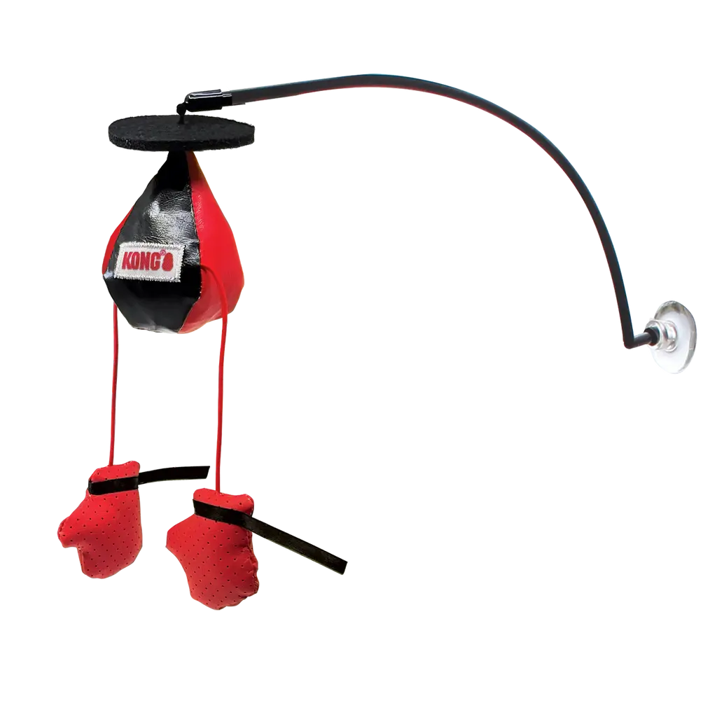 KONG Connects Window Boxing is a portable play gym designed to keep your cat entertained with a variety of sensory experiences. It securely attaches to any smooth vertical surface, offering dynamic play with bobbing boxing gloves on elastic lines, infused with KONG Premium North American Catnip for added excitement. Bells and rattles are included to spark hunting instincts, ensuring your kitty stays engaged and entertained.