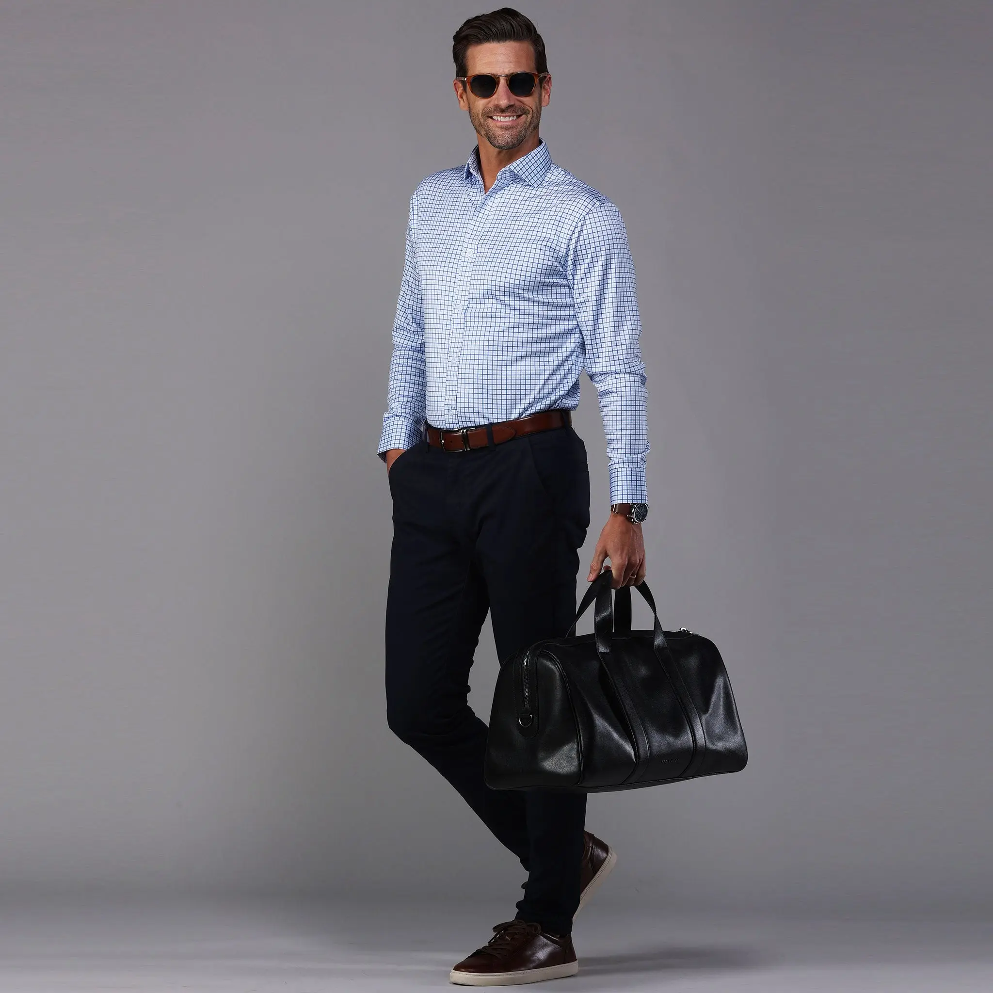 Quattro Flex Dress Shirt with Semi-Spread Collar Blue Tattersall