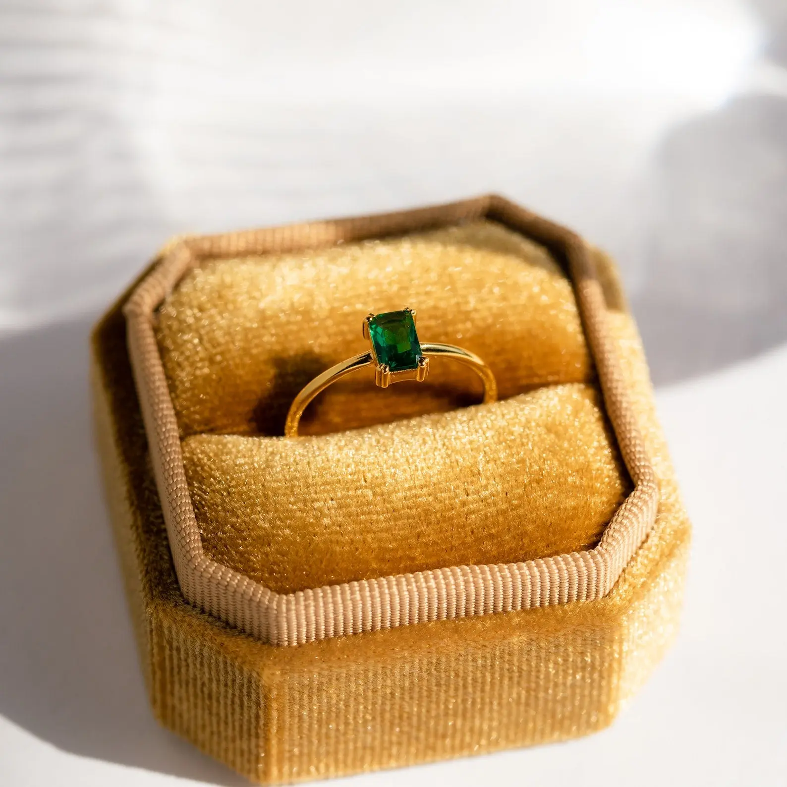 Emeralds, with their incredible brilliance and splendid colour, instantly catch the eye and offers a sense of luxury. Make a statement with our gorgeous vintage-style Emerald Solitaire Ring. Its art-deco-meets-minimalist design is perfect for the sophisticated gals in your life who enjoy vintage-style jewelry with a modern feel.