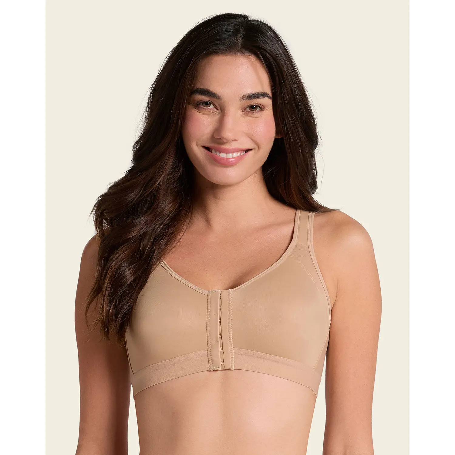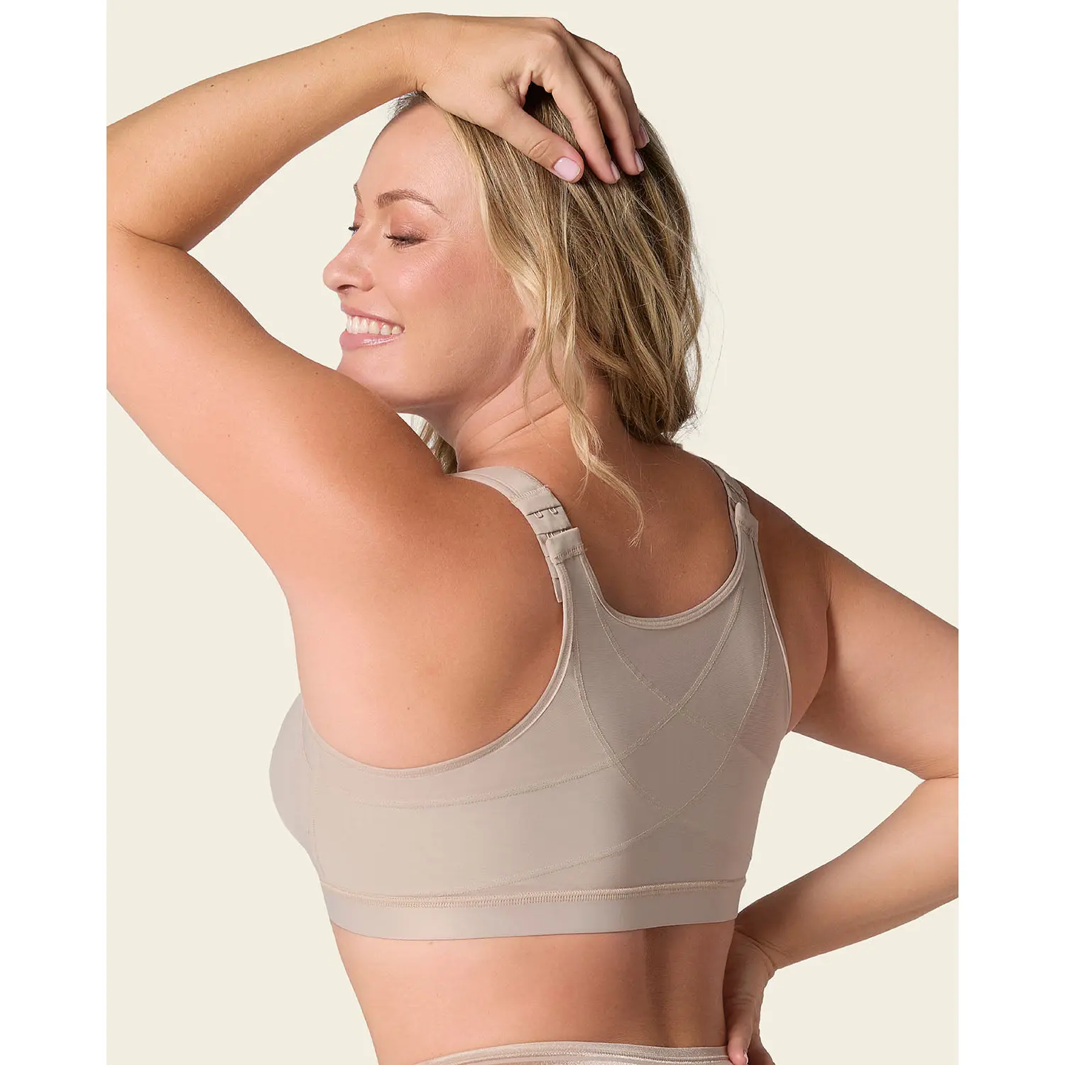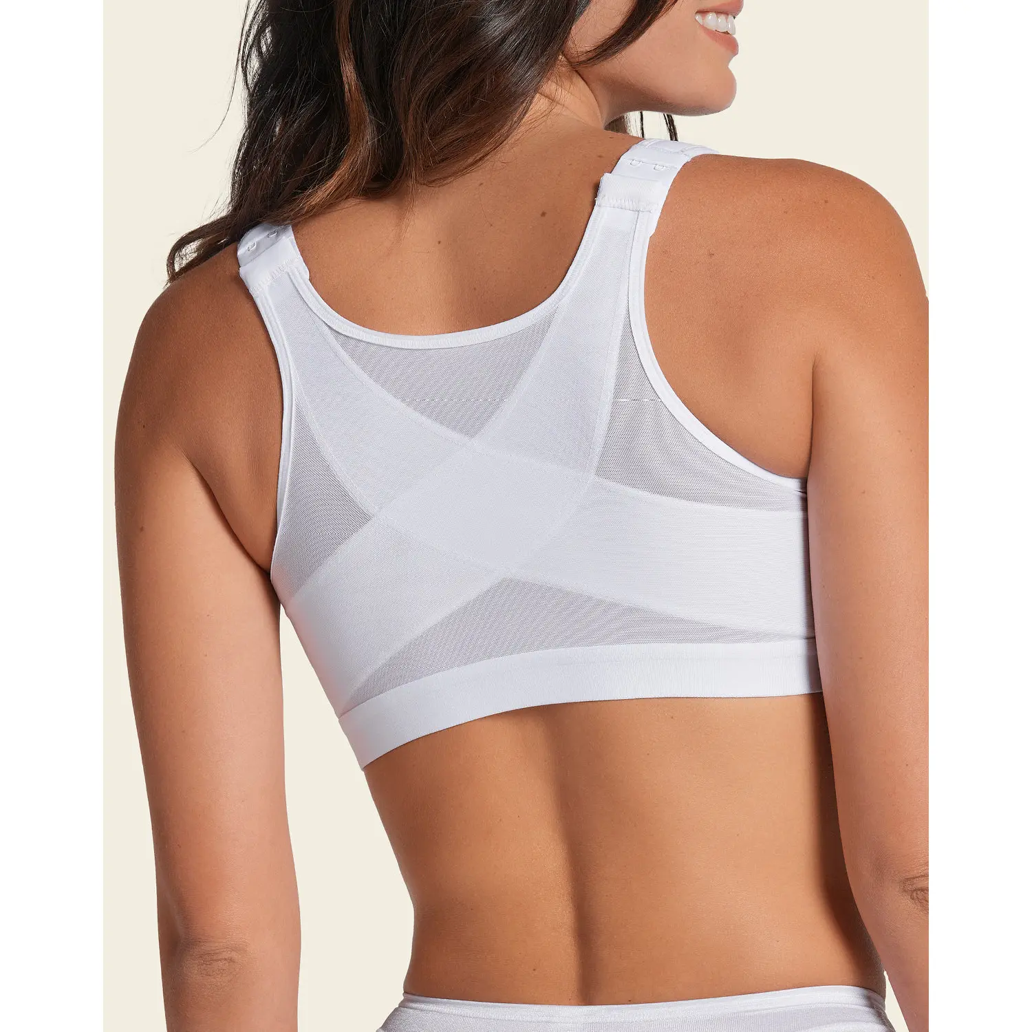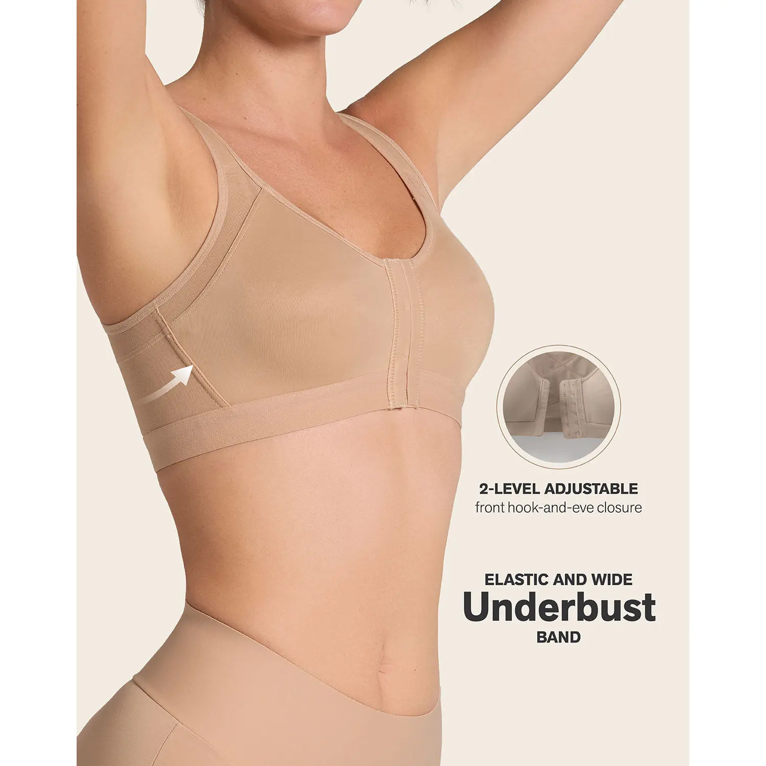 ·6-row, 2-level adjustable front hook-and-eye-closure (for band sizes 32 and 34) or 7-row 2-level adjustable (for band sizes 36 and up) make it easy to wear.