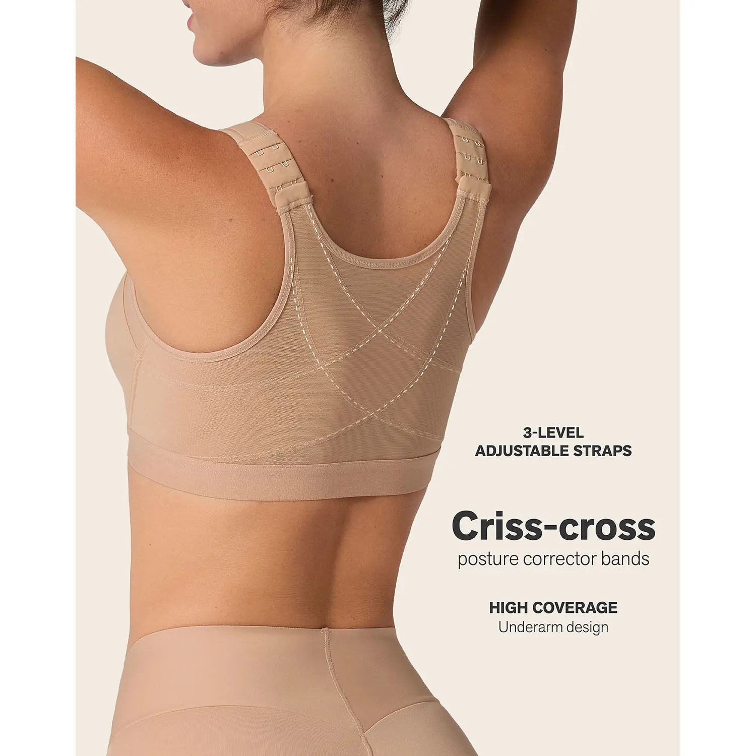 ·Maximum support: Criss-cross back support bands made of PowerSlim® provide our highest level of posture correction.