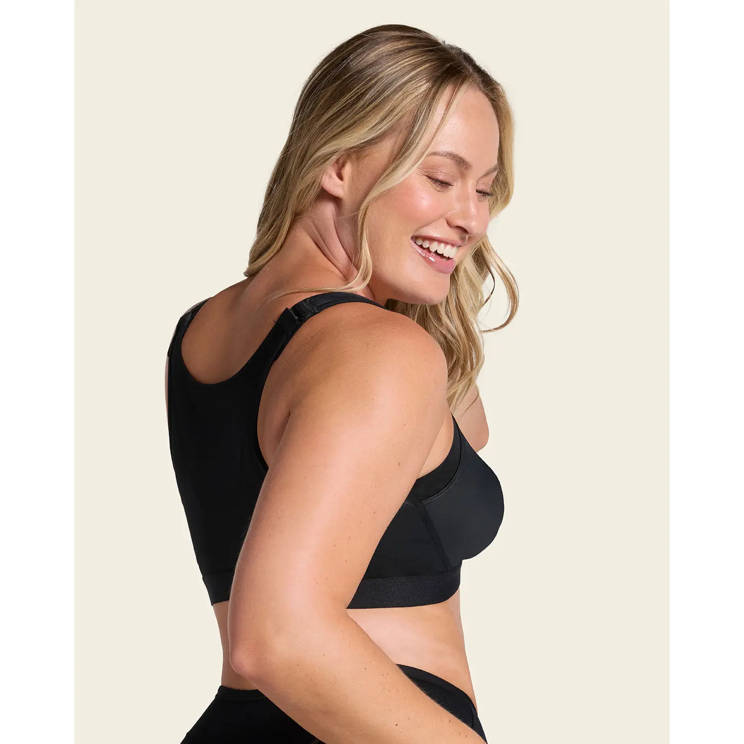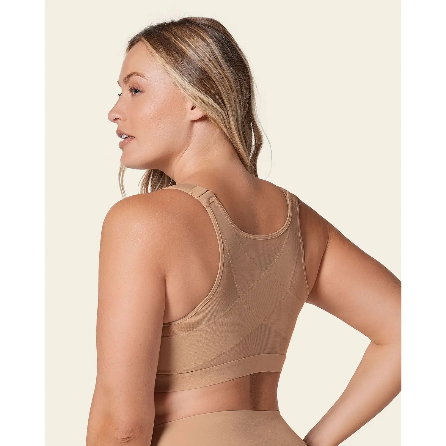 ·An unlined wireless back support bra.