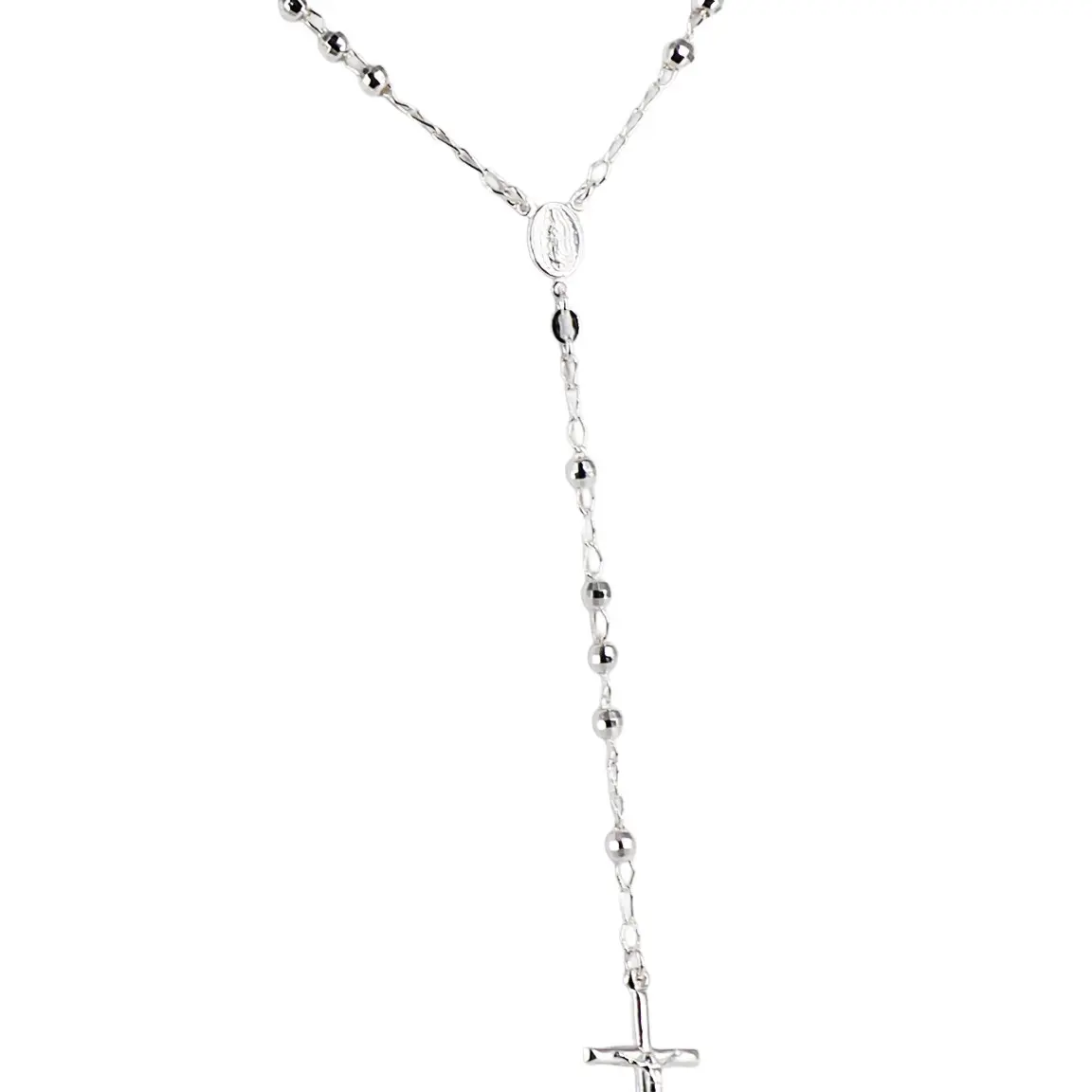 925 Sterling Silver Diamond Cut Italian 4mm Rosary Beads Chain with Cross Necklace 24" Rosario